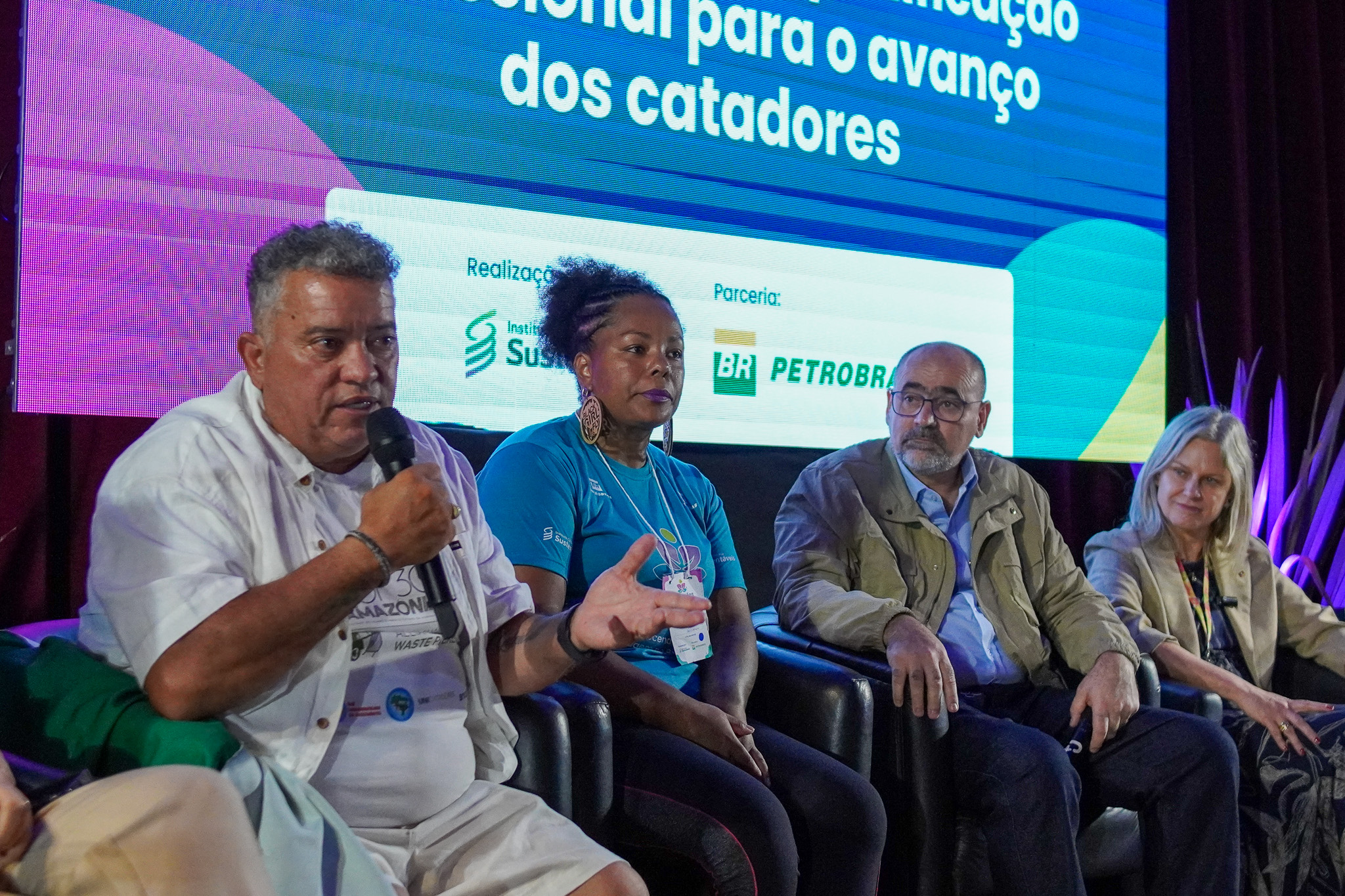 A mesa de diálogo contou com a presença de representantes do Movimento Nacional de Catadores de Materiais Recicláveis (MNCR) e Centro SAMA, Sirlei Batista e Fagner Jandrey; o representante da Prefeitura de Canoas, Marcelo Grala; a liderança da Cooperativa Renascer, Michele Santos; a Procuradora de Justiça Dra. Ana Marchesan, acompanhando a Secretária de Relações Institucionais do Estado do RS, Paula Mascarenhas; a Professora Dra. Malu Borges, da Unilasalle; e Severino Lima, presidente da Aliança Internacional de Catadores. A conversa foi mediada por Dione Manetti, presidente do Instituto Caminhos Sustentáveis.