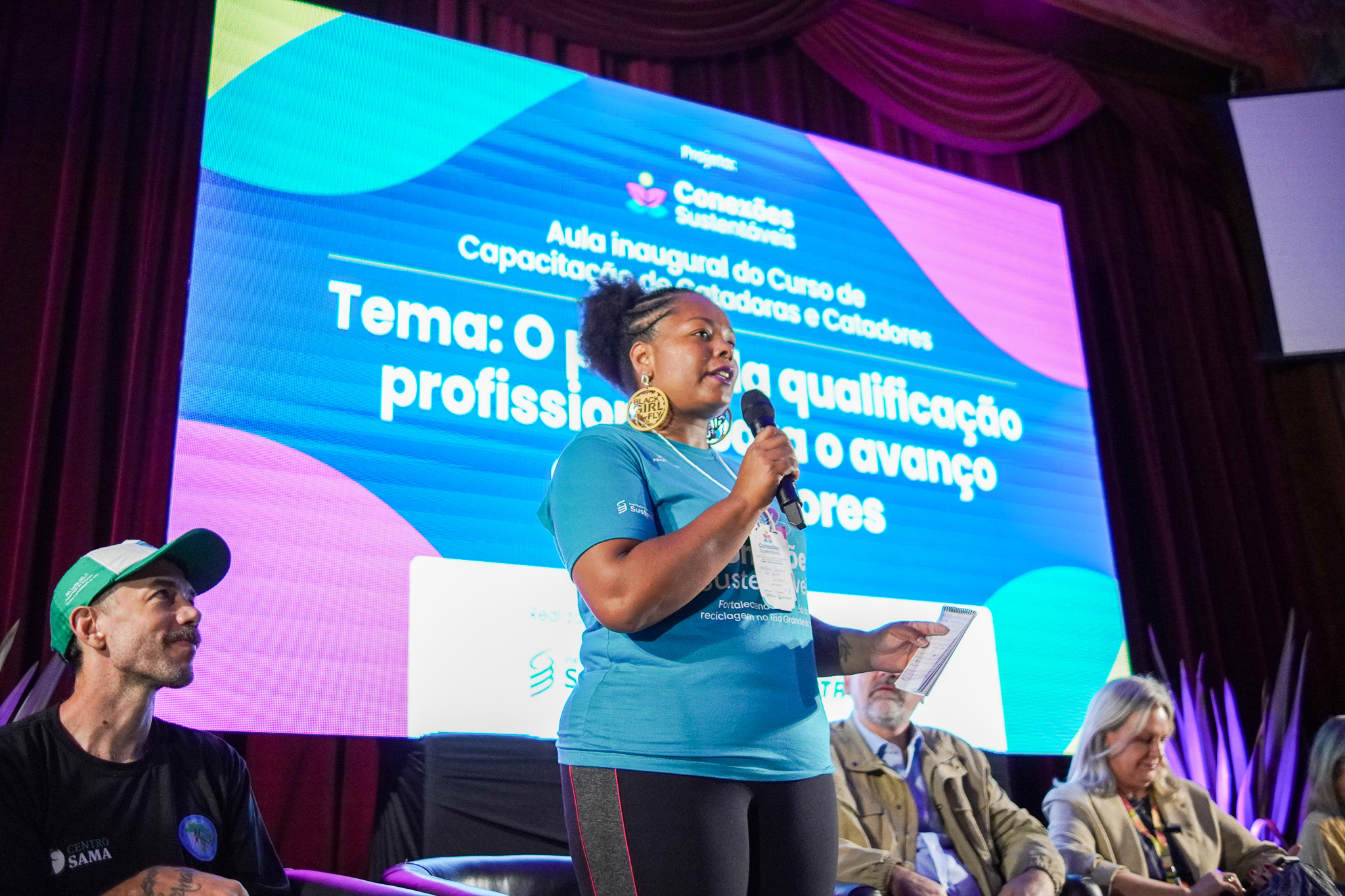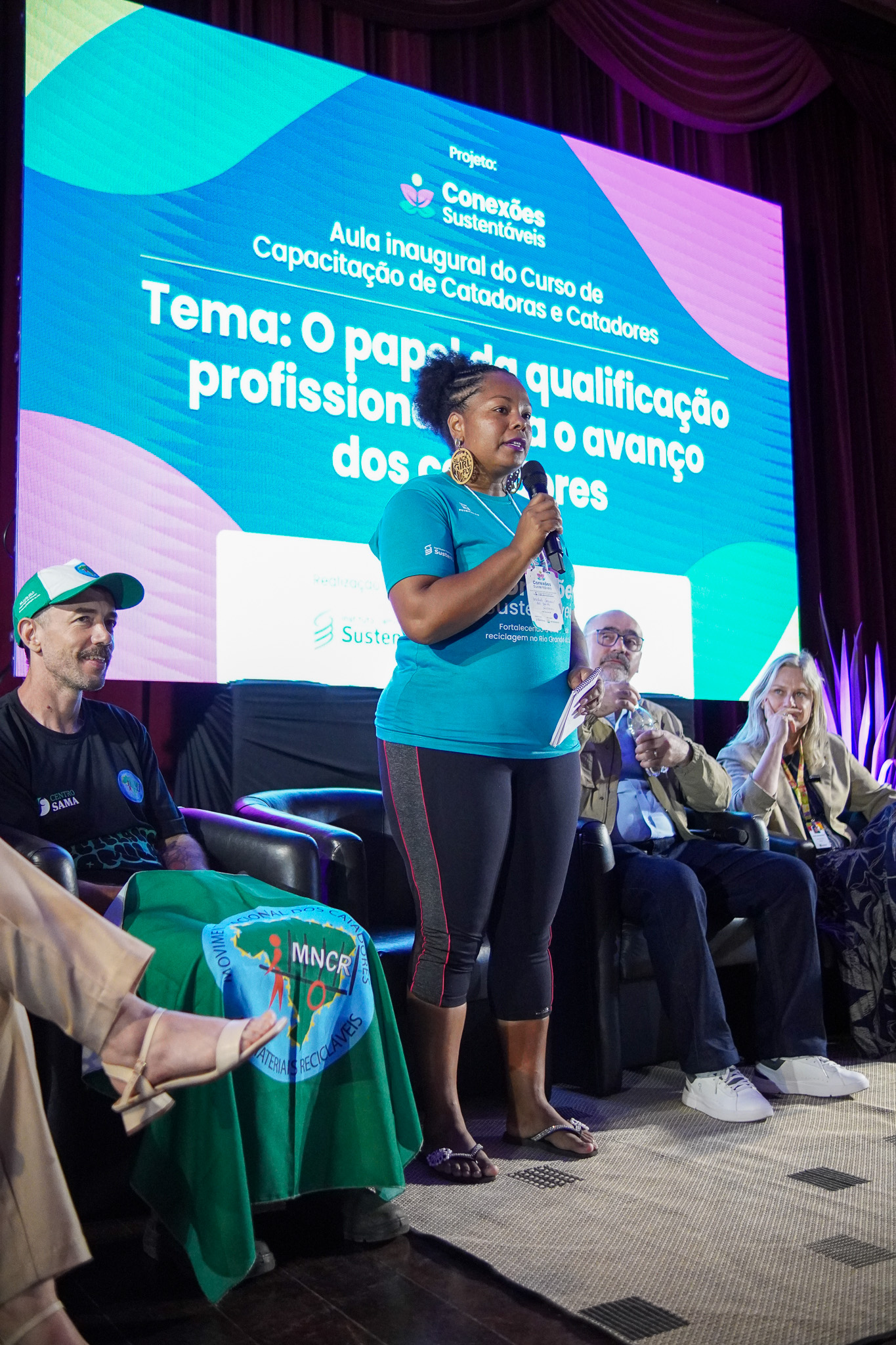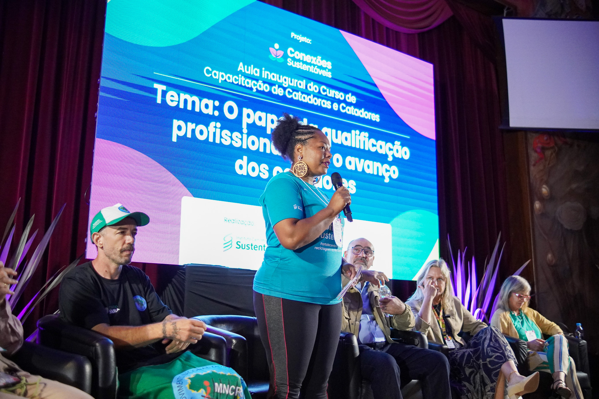A igualdade que vivemos e defendemos nesse espaço não é a negação das diferenças. Igualdade, para nós, é equidade. Por isso, as mulheres ocupam o palco. Não como ornamento, não como figura decorativa, mas como força política real. São elas que falam, que denunciam, que propõem, que negociam, que enfrentam conflitos e que garantem o avanço da categoria. A voz coletiva que ecoa na ExpoCatadores carrega, de forma muito forte, a voz das mulheres catadoras.