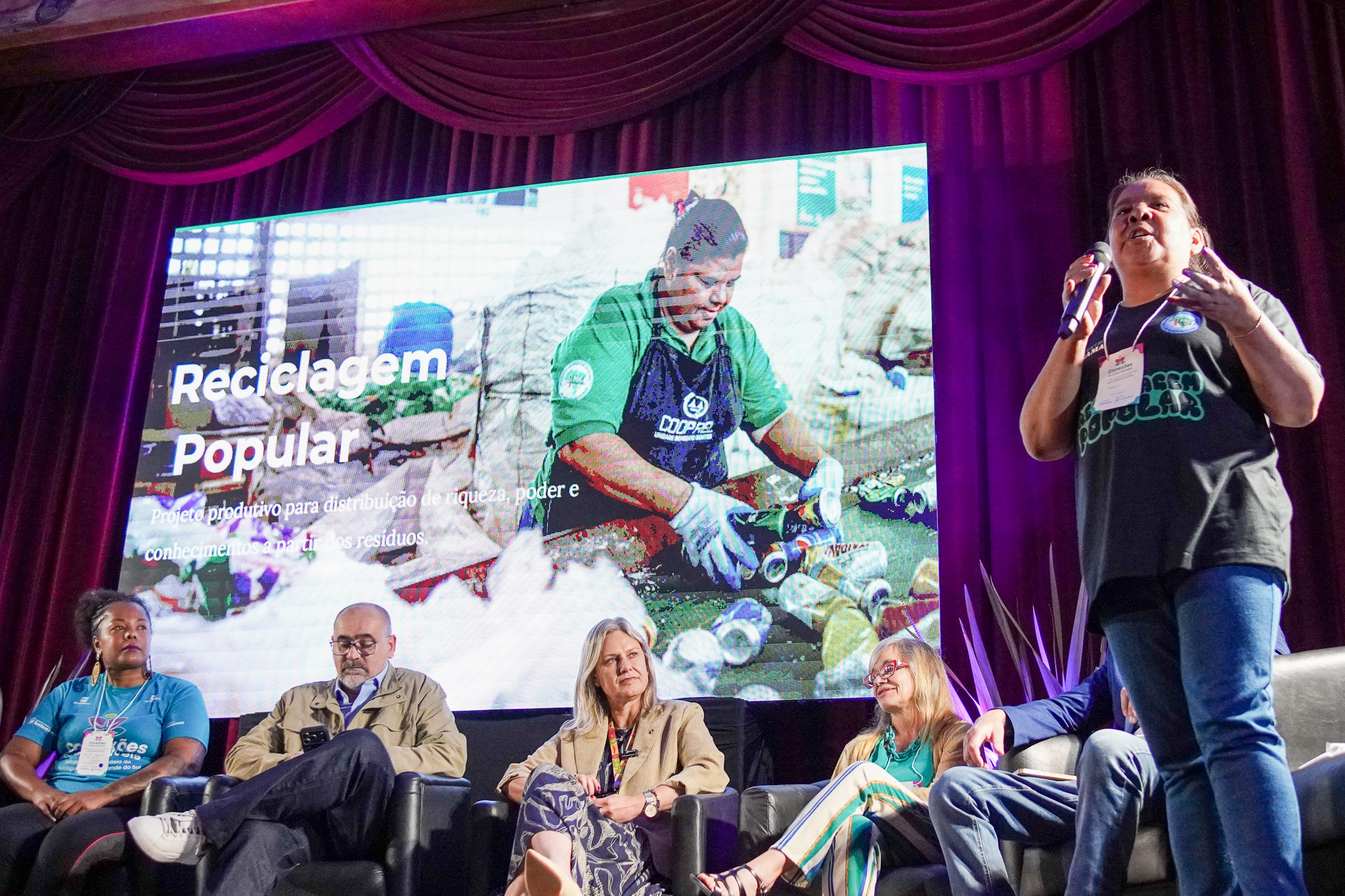 Tenho muitas felicidades em participar da ExpoCatadores. Elas estão no abraço do reencontro, na conversa com as catadoras mais velhinhas que contam seus avanços e desafios, nos diálogos respeitosos com empresárias e gestores públicos que reconhecem a categoria como igual, no canto coletivo e na palavra de ordem que afirma a reciclagem popular como alternativa concreta para salvar o planeta. Mas, sobretudo, estão na certeza de que sem as mulheres catadoras, não existe reciclagem popular, não existe movimento, não existe futuro.