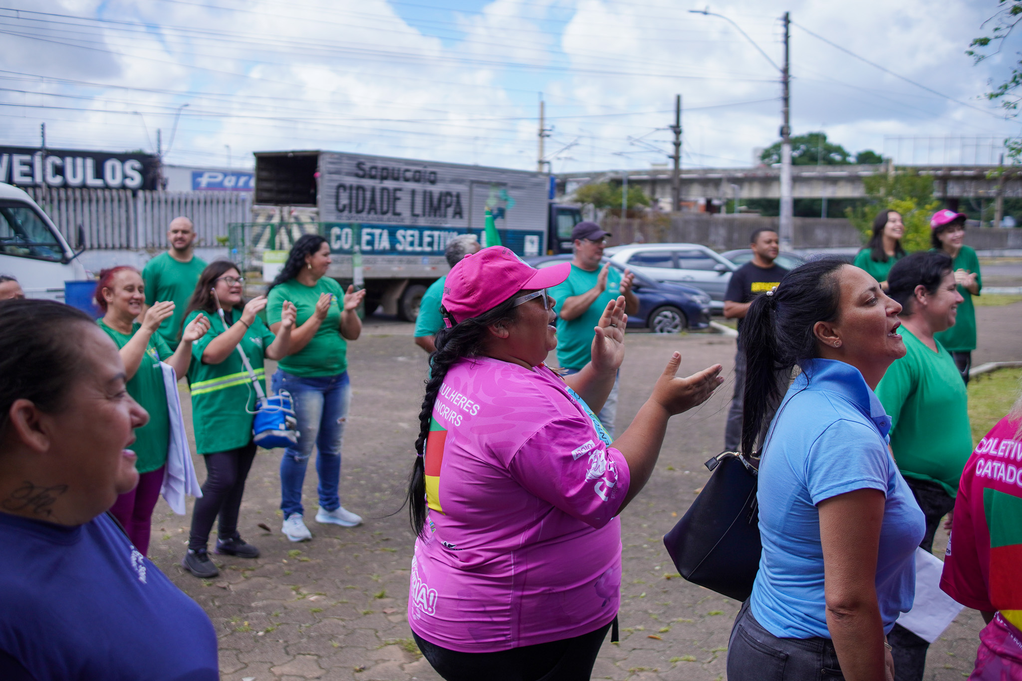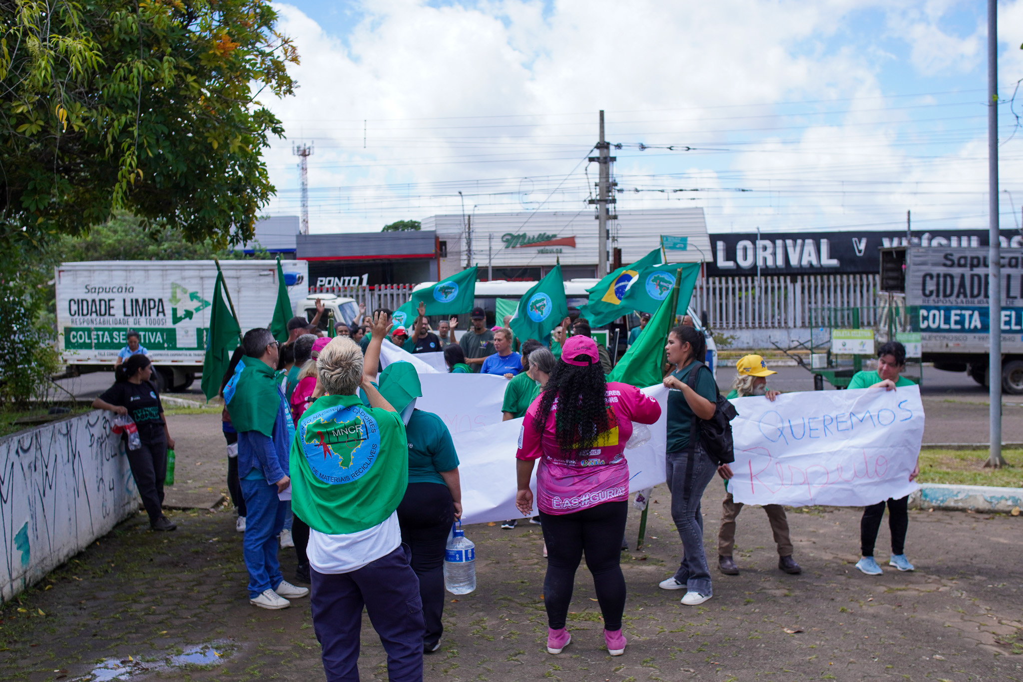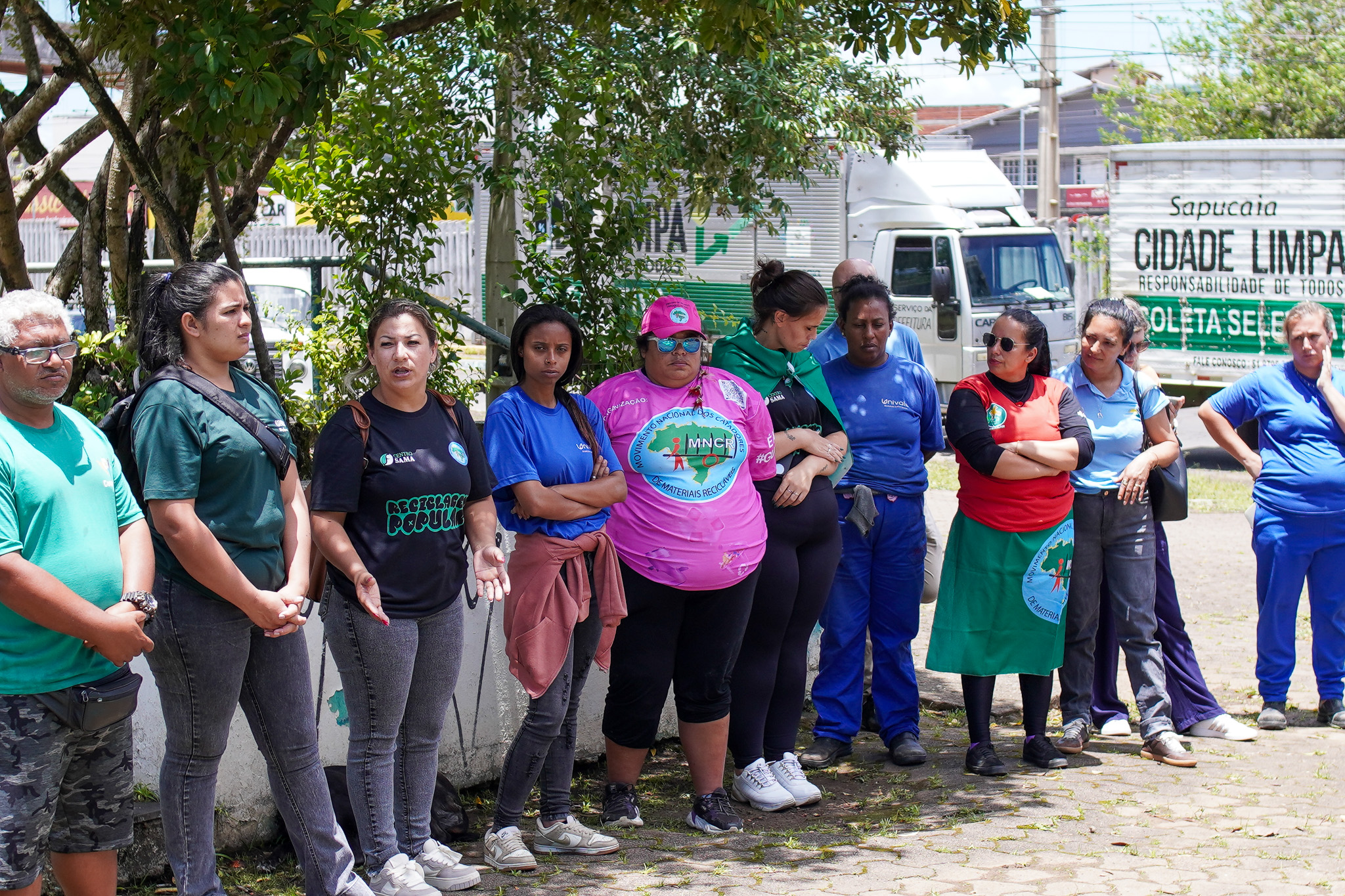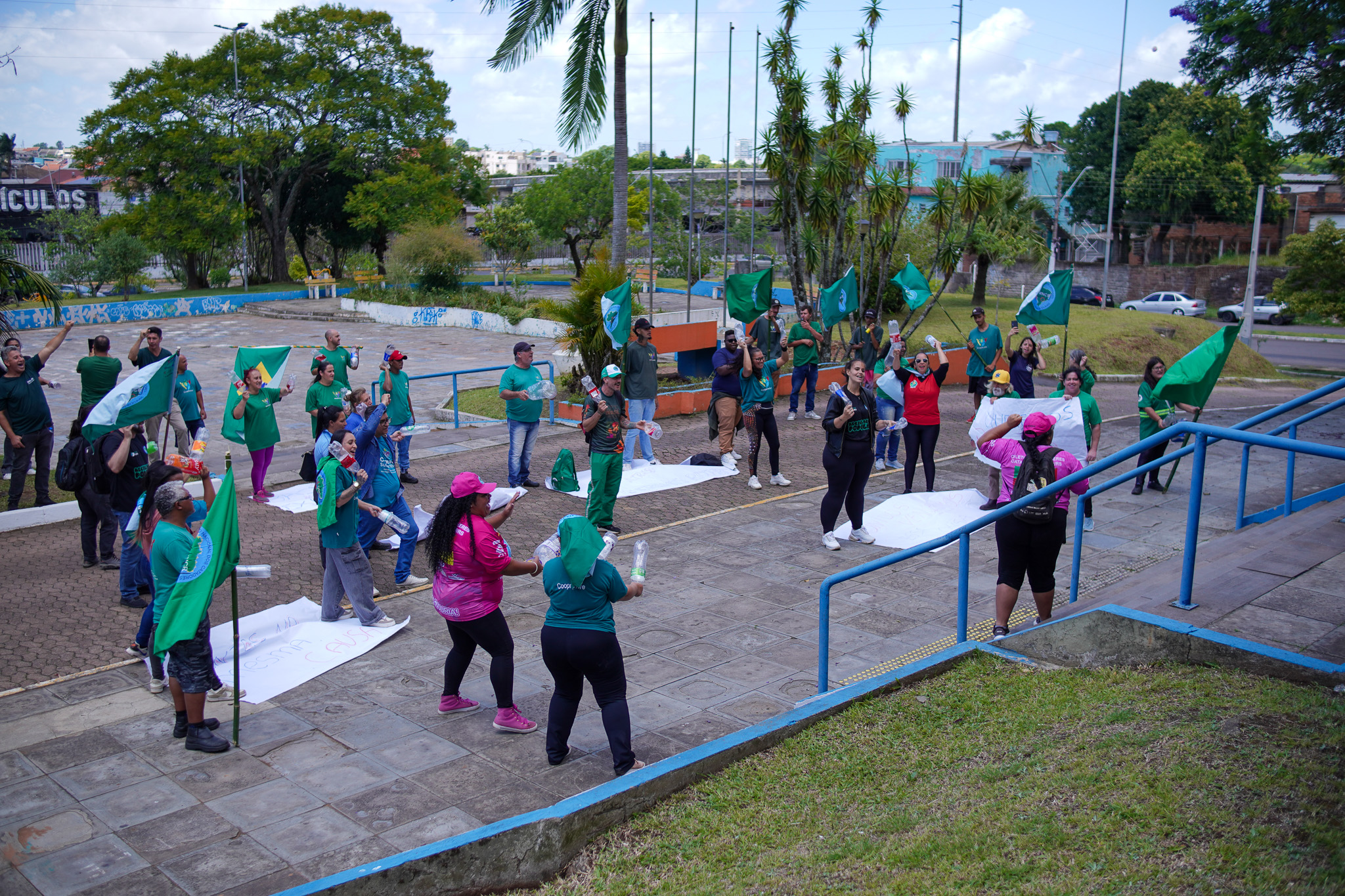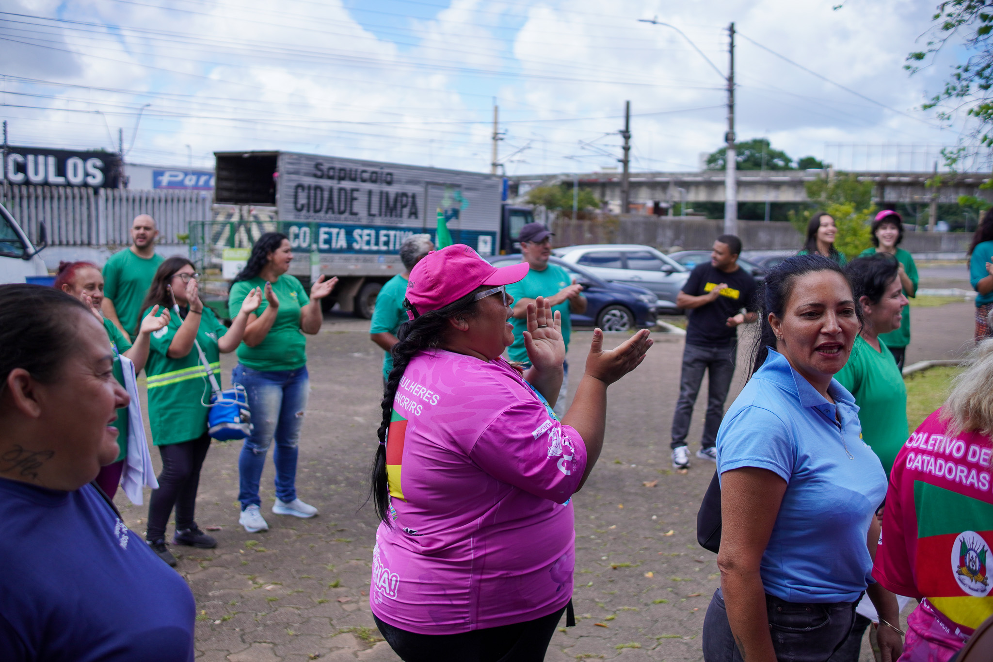 Na manhã do dia 11 de dezembro, cerca de 60 catadoras, catadores e apoiadores se reuniram em frente à Prefeitura de Sapucaia do Sul para protestar pela falta de pagamento à Cooperativa Cooprevive.
