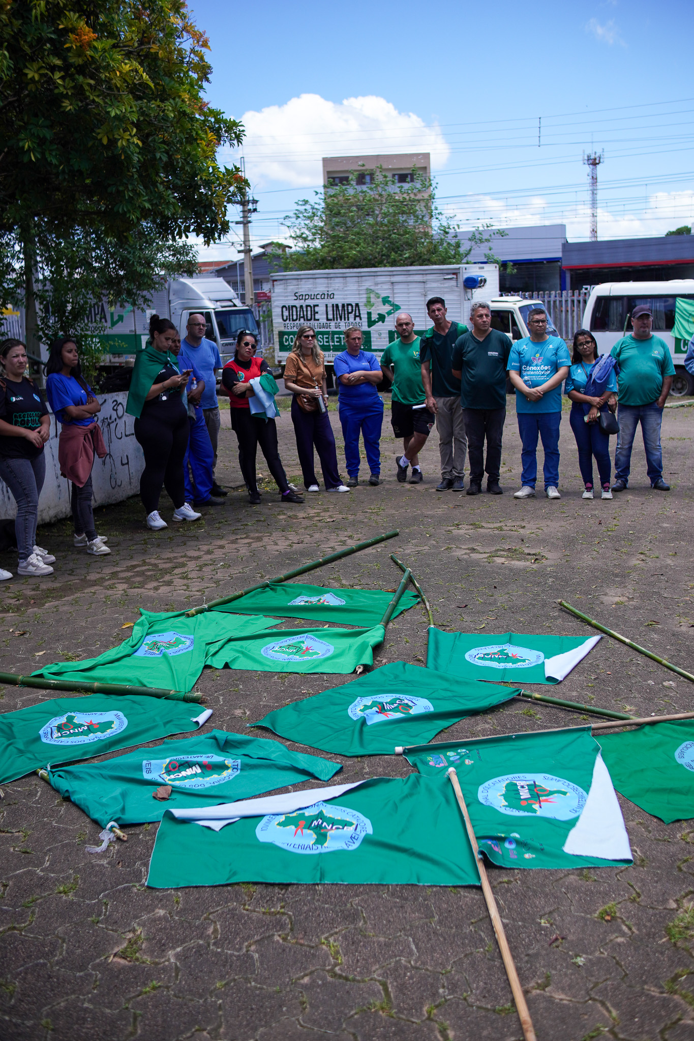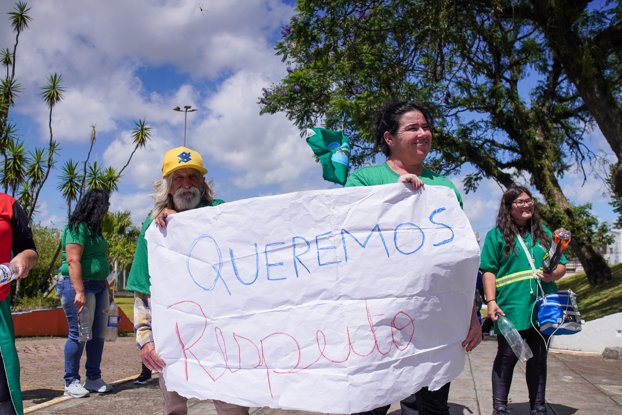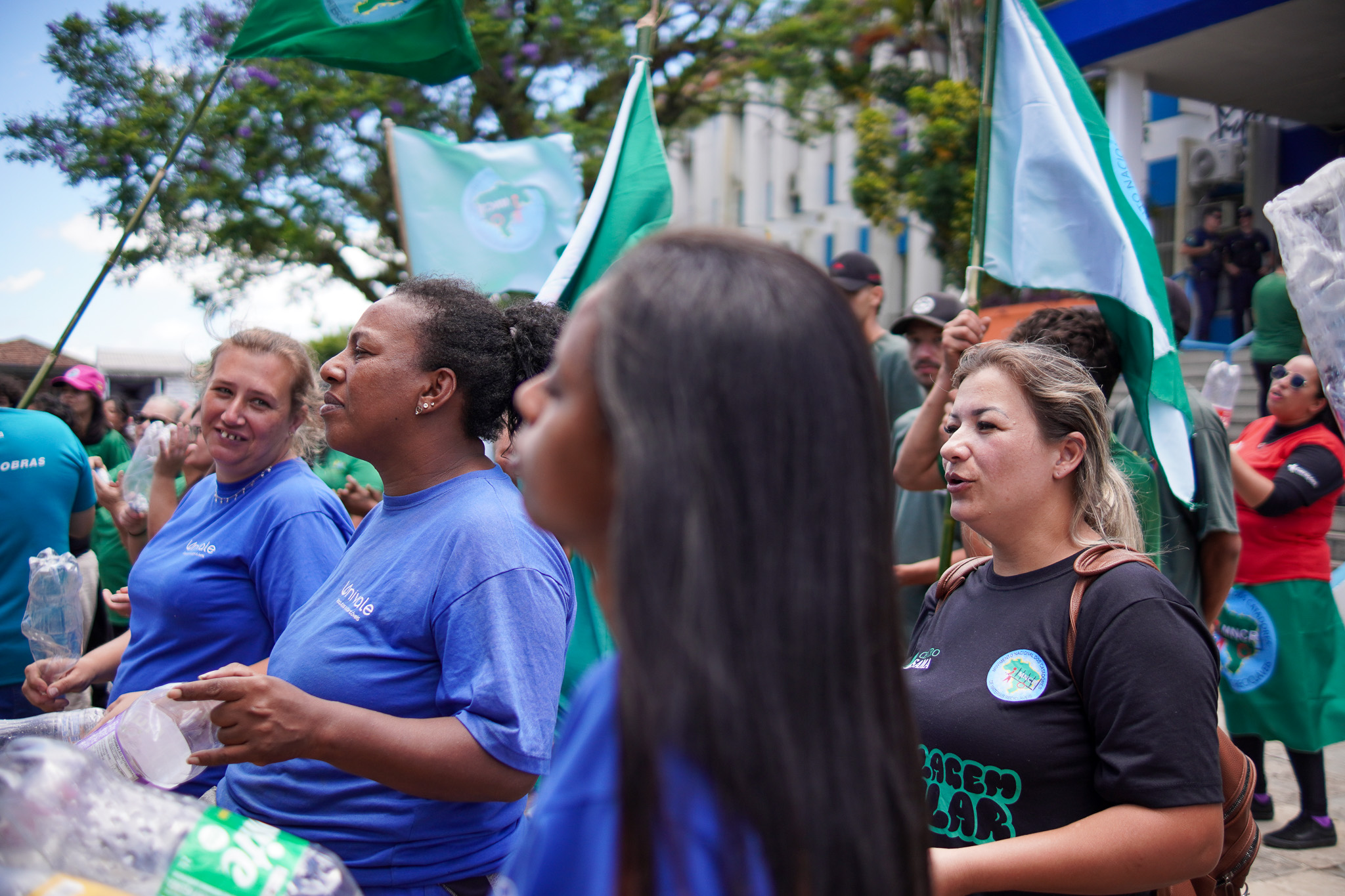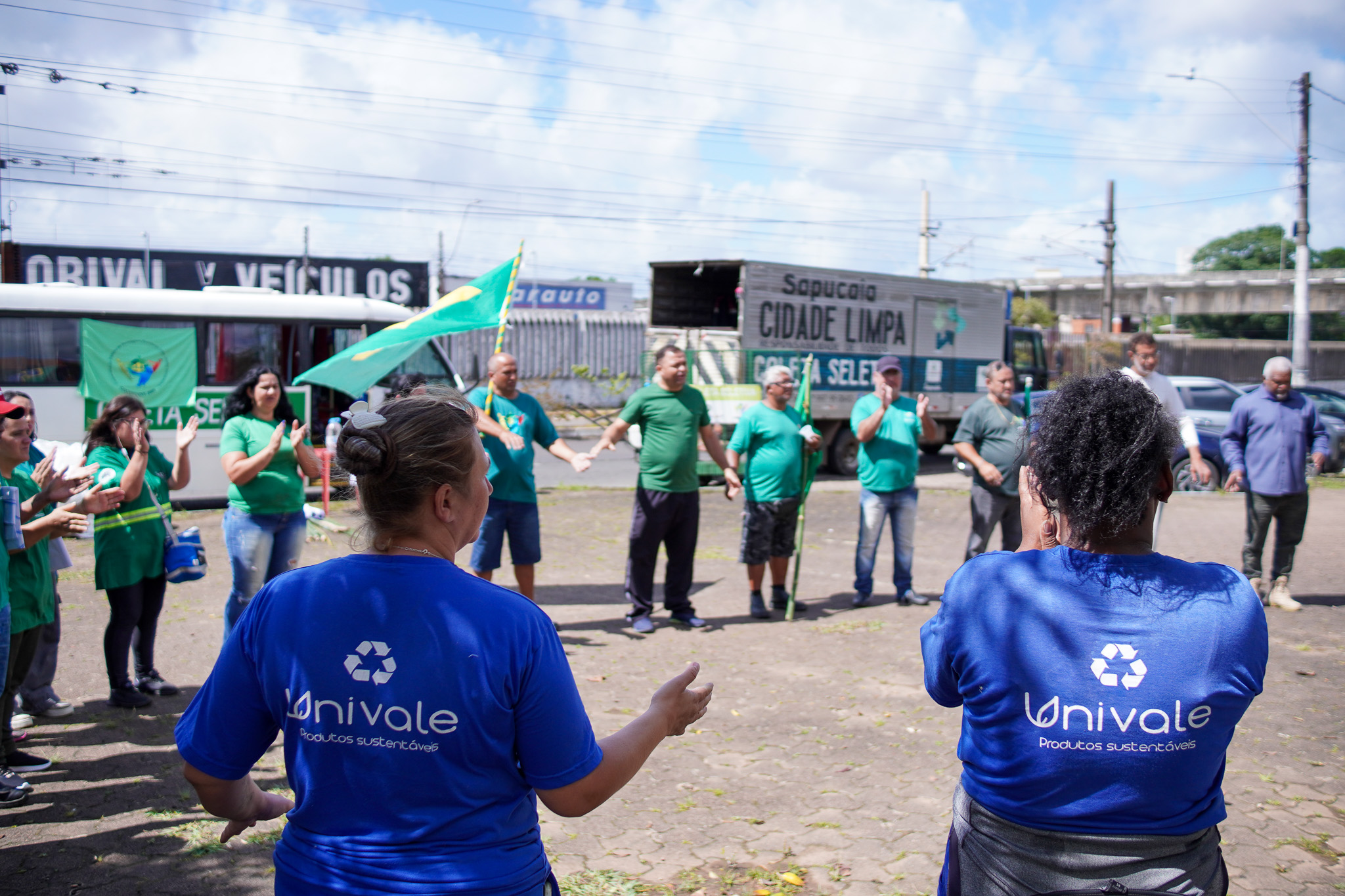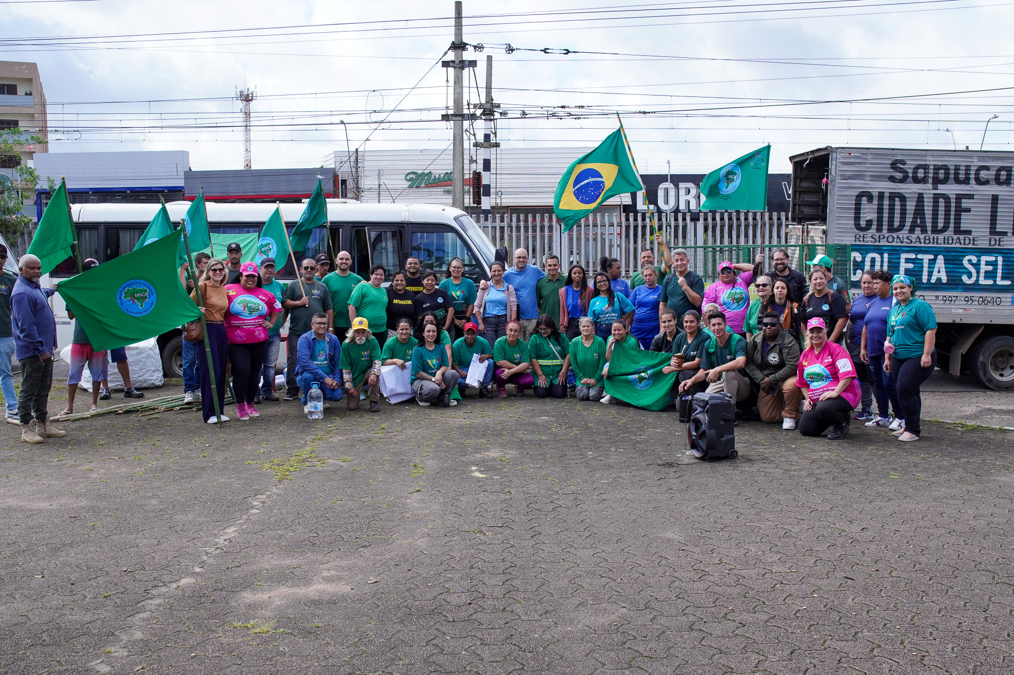 Na manhã do dia 11 de dezembro, cerca de 60 catadoras, catadores e apoiadores se reuniram em frente à Prefeitura de Sapucaia do Sul para protestar pela falta de pagamento à Cooperativa Cooprevive.