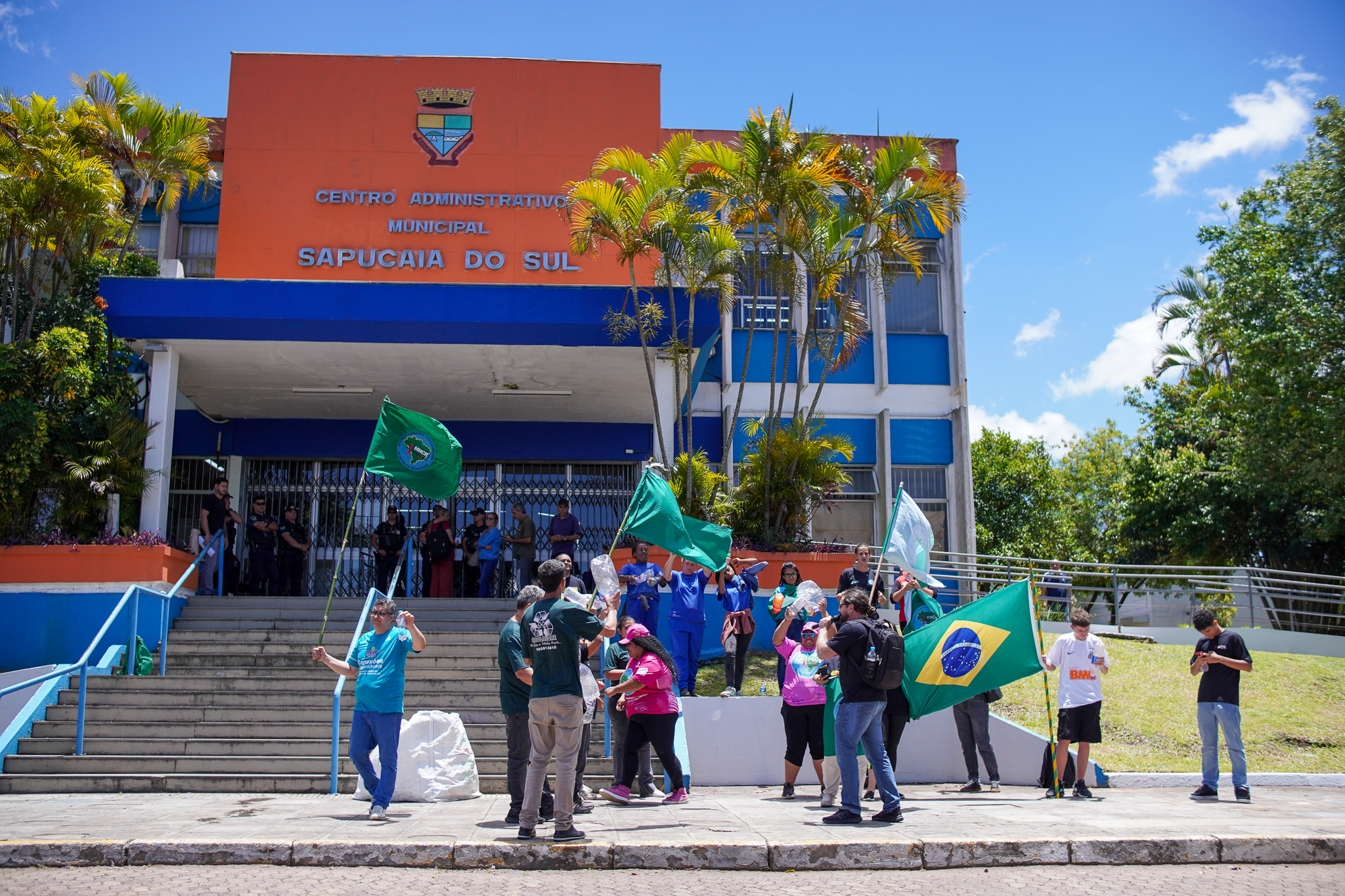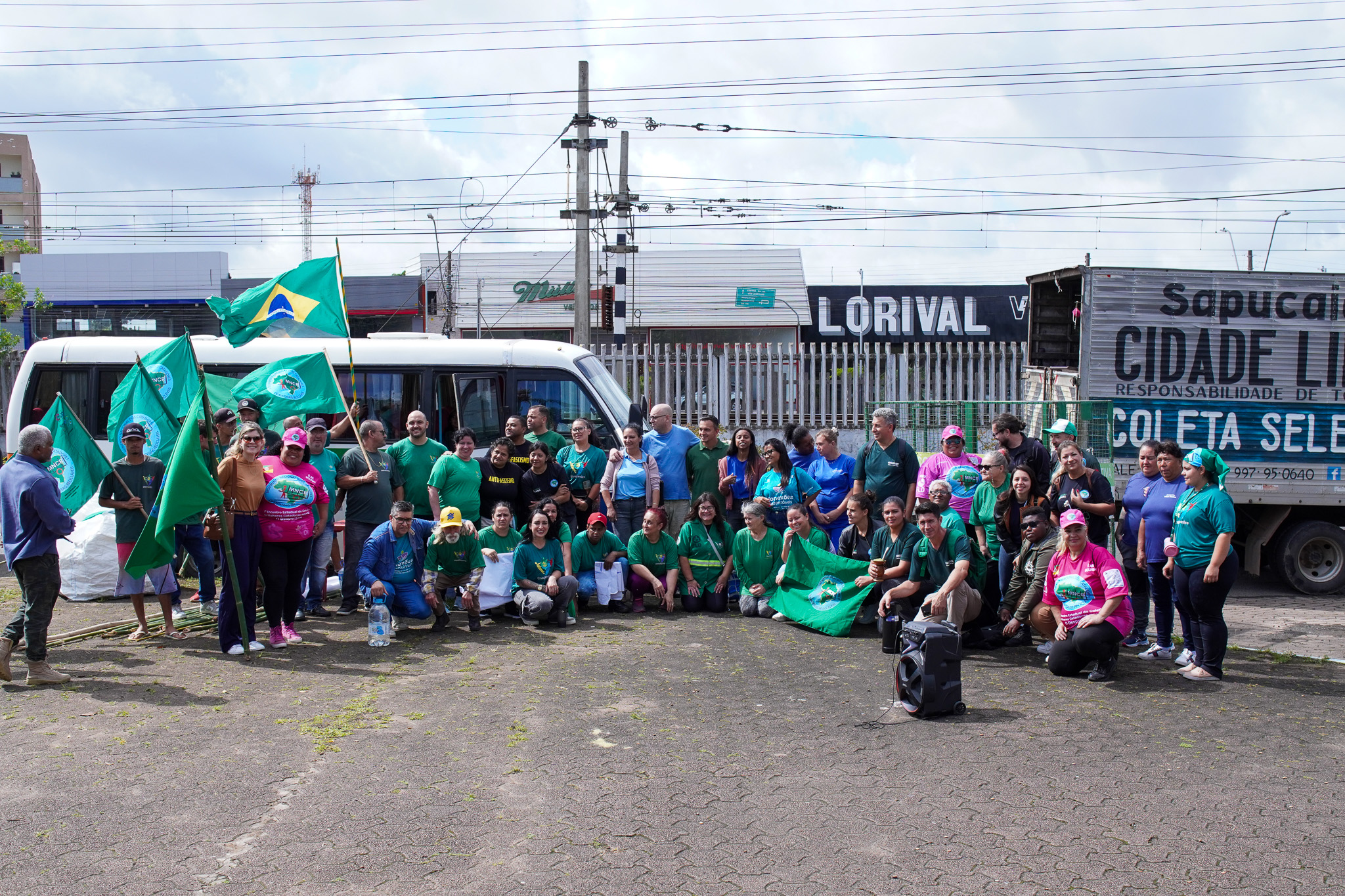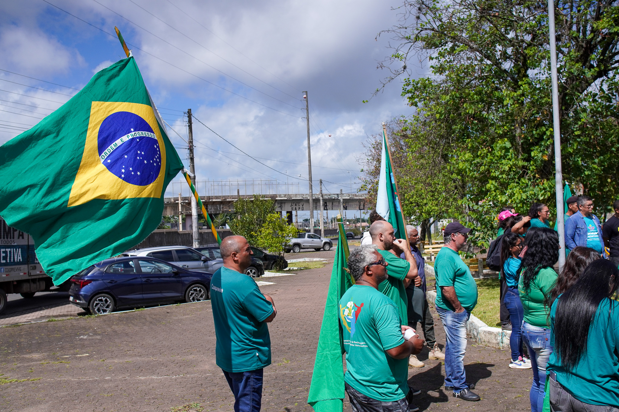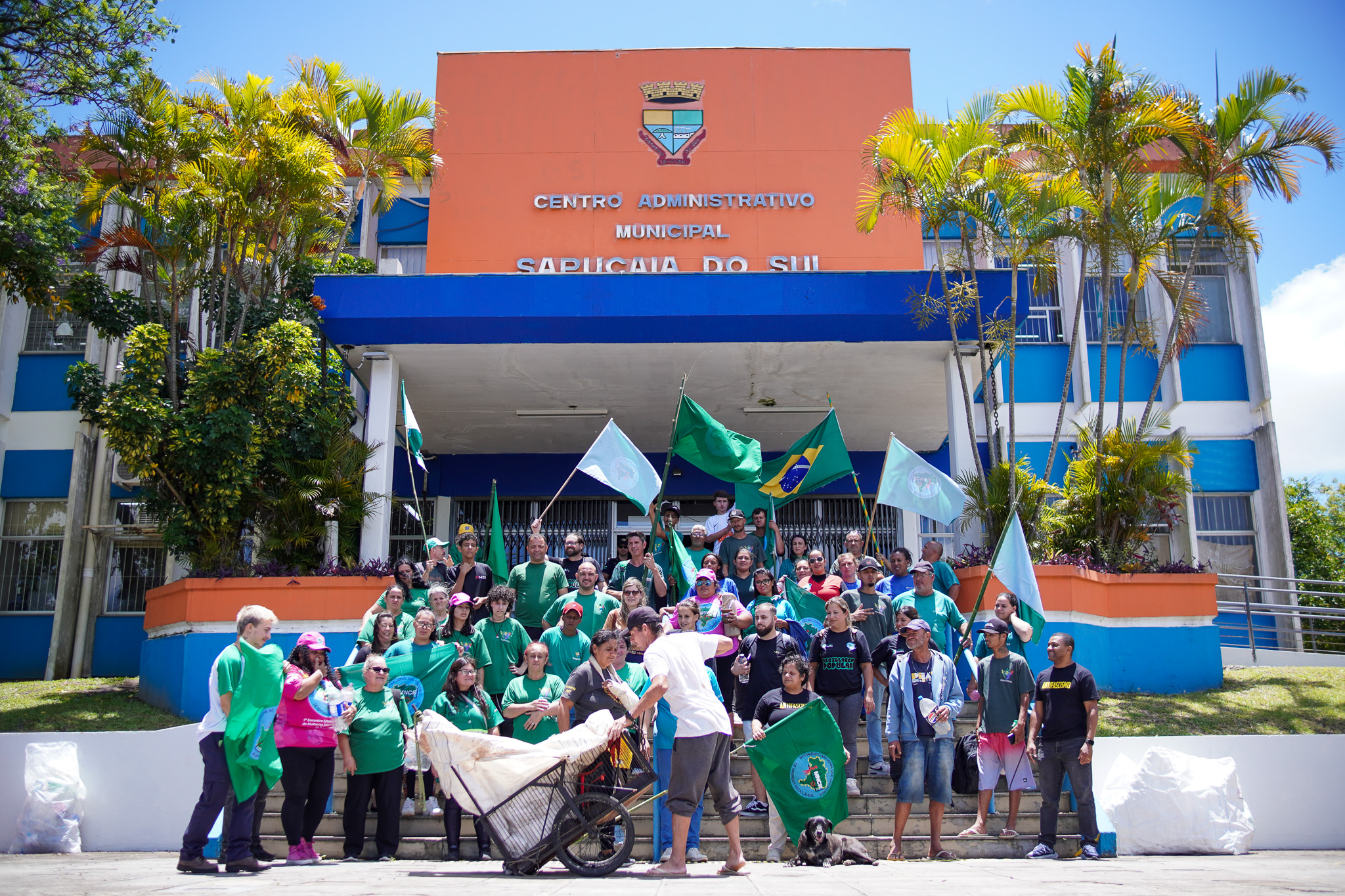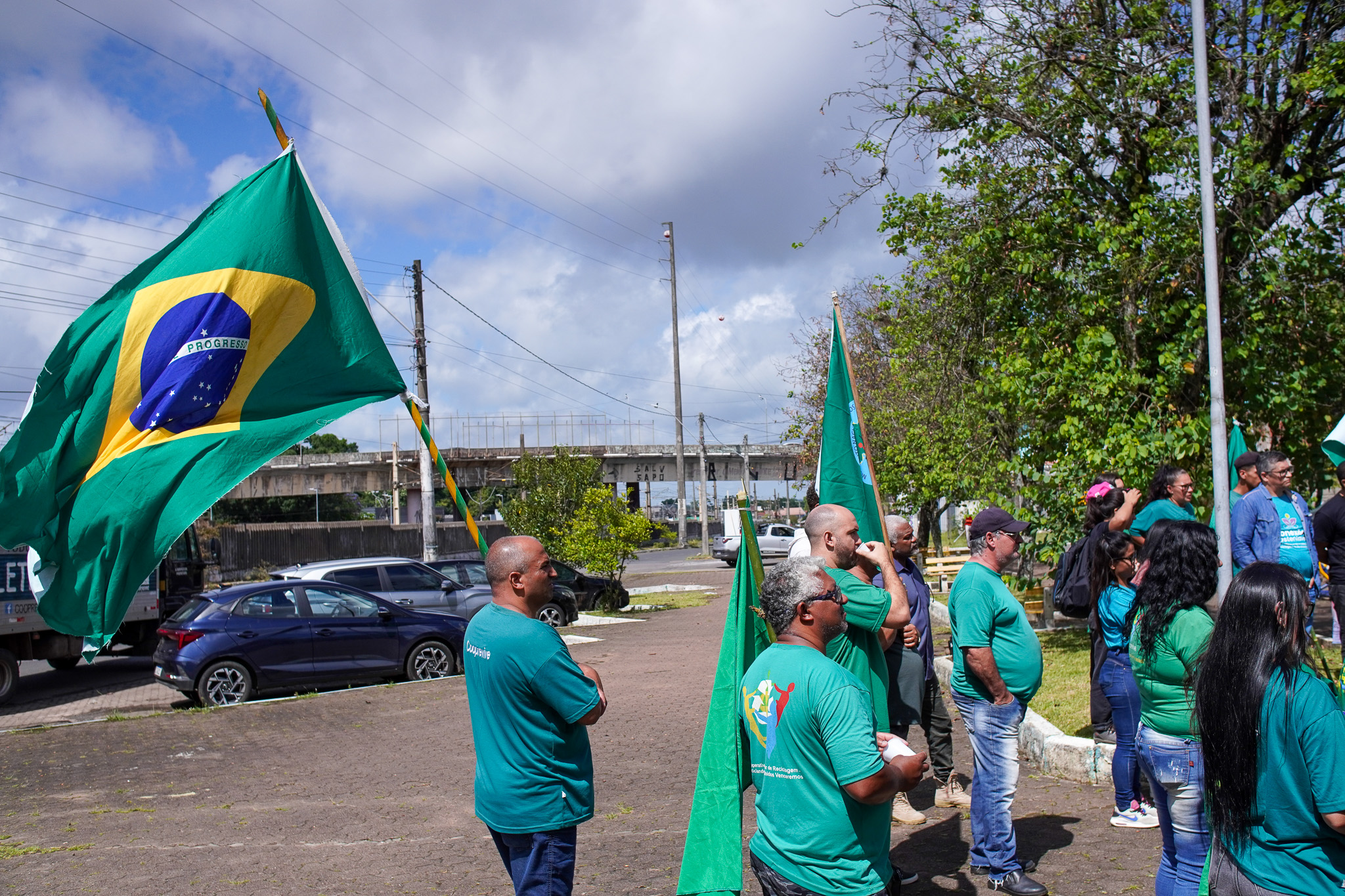 Na manhã do dia 11 de dezembro, cerca de 60 catadoras, catadores e apoiadores se reuniram em frente à Prefeitura de Sapucaia do Sul para protestar pela falta de pagamento à Cooperativa Cooprevive.