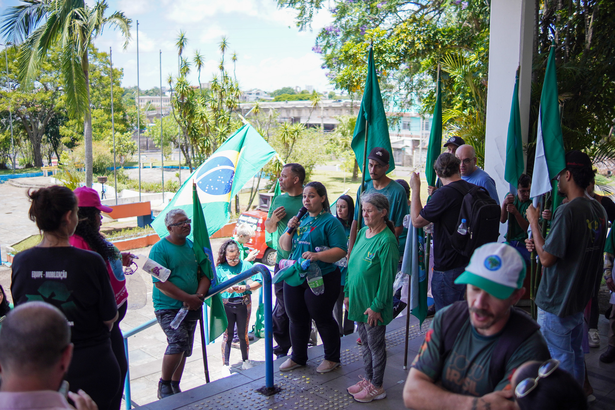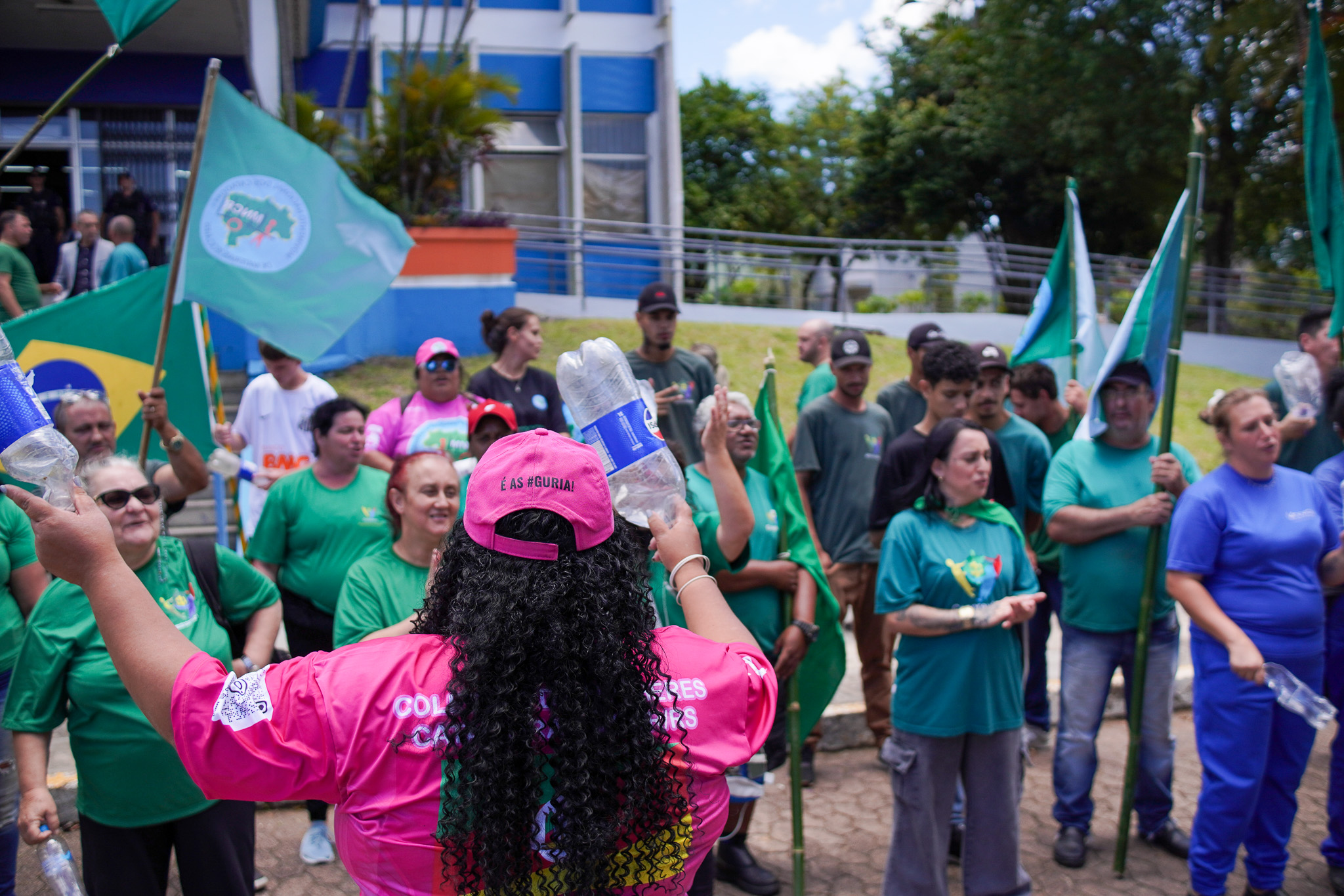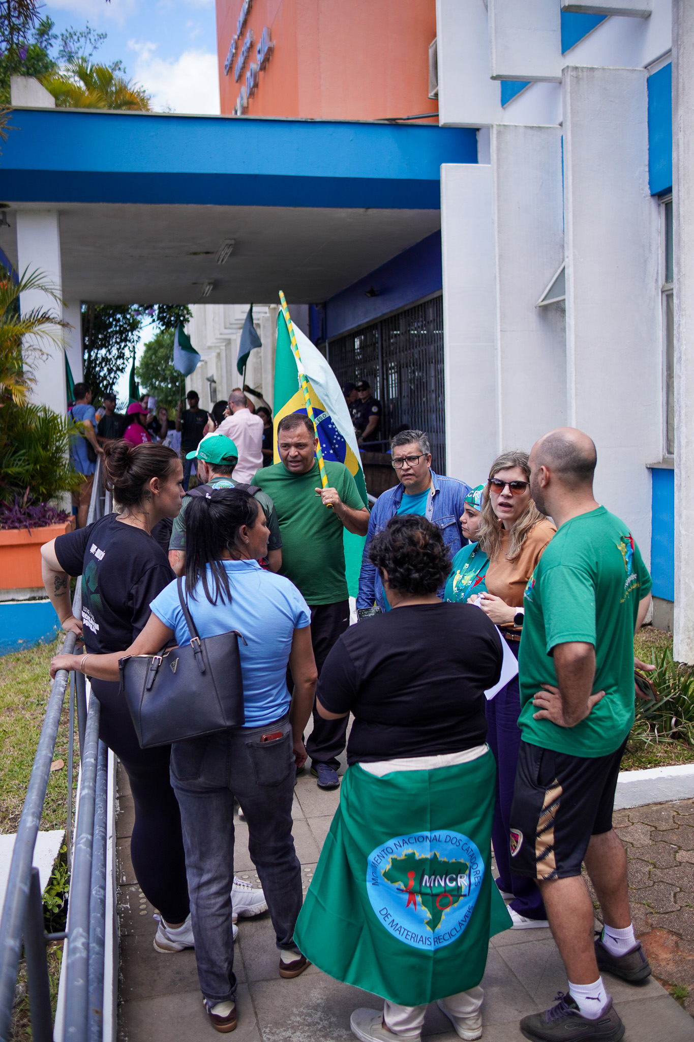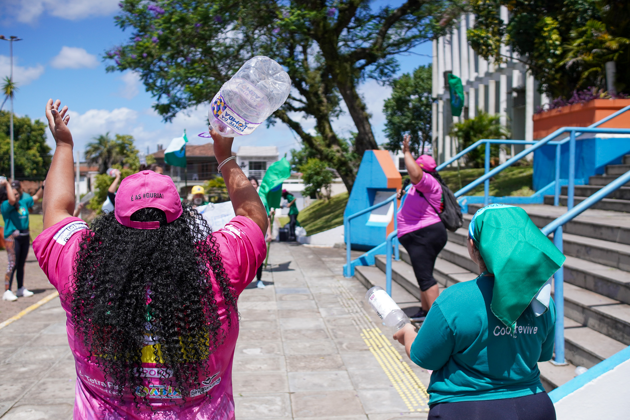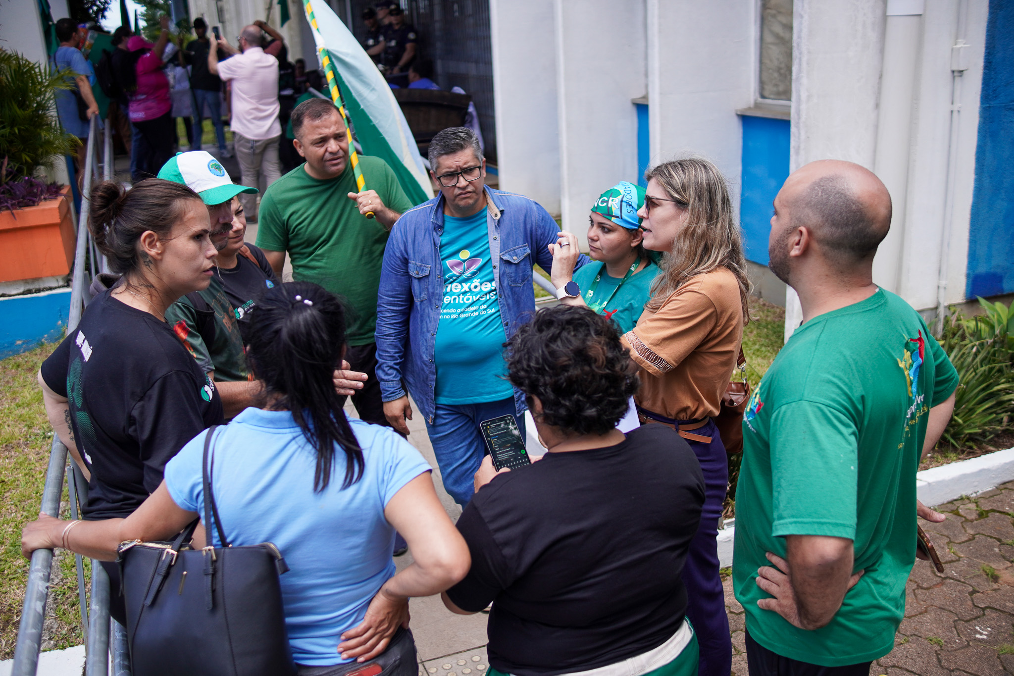 Na manhã do dia 11 de dezembro, cerca de 60 catadoras, catadores e apoiadores se reuniram em frente à Prefeitura de Sapucaia do Sul para protestar pela falta de pagamento à Cooperativa Cooprevive.