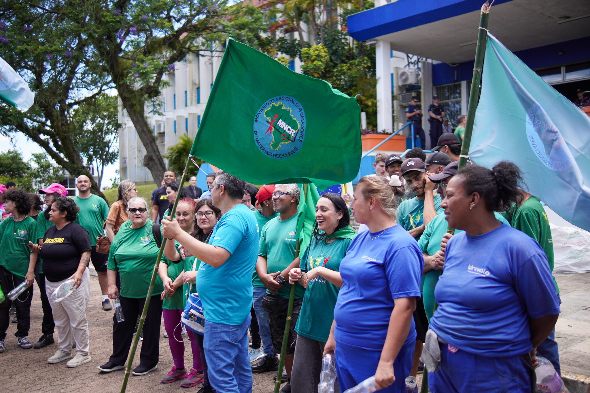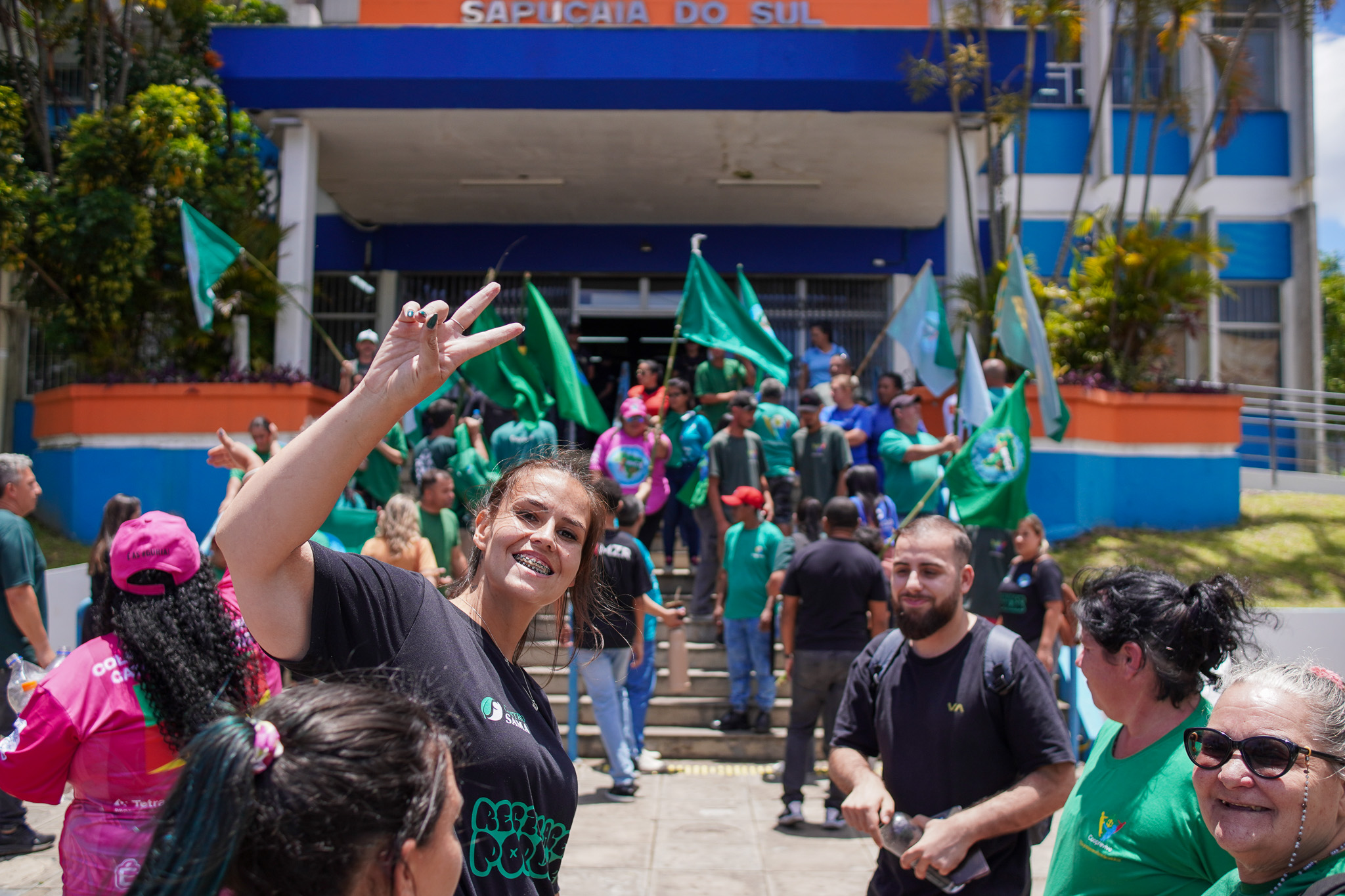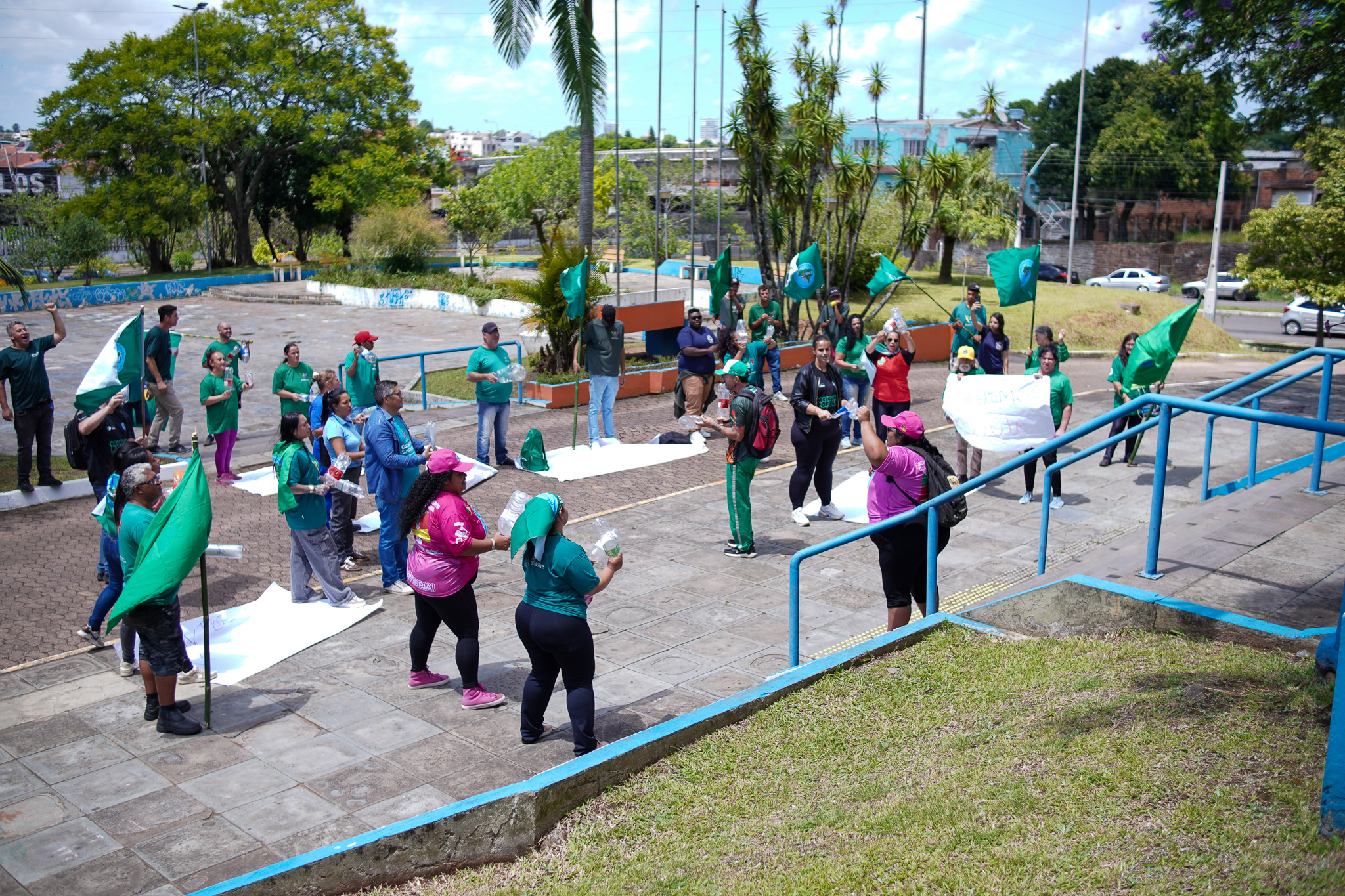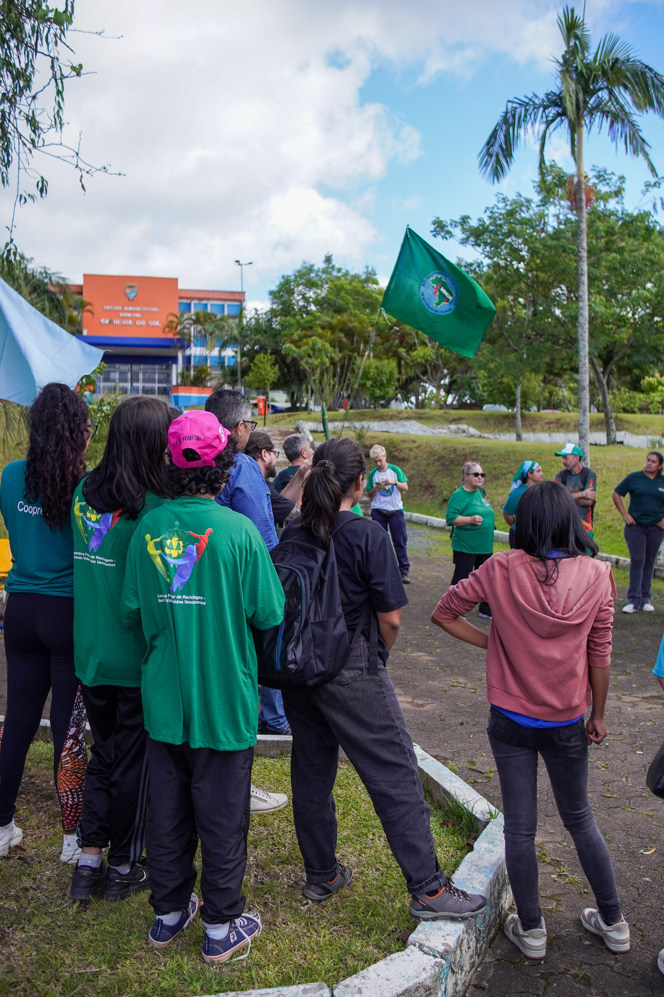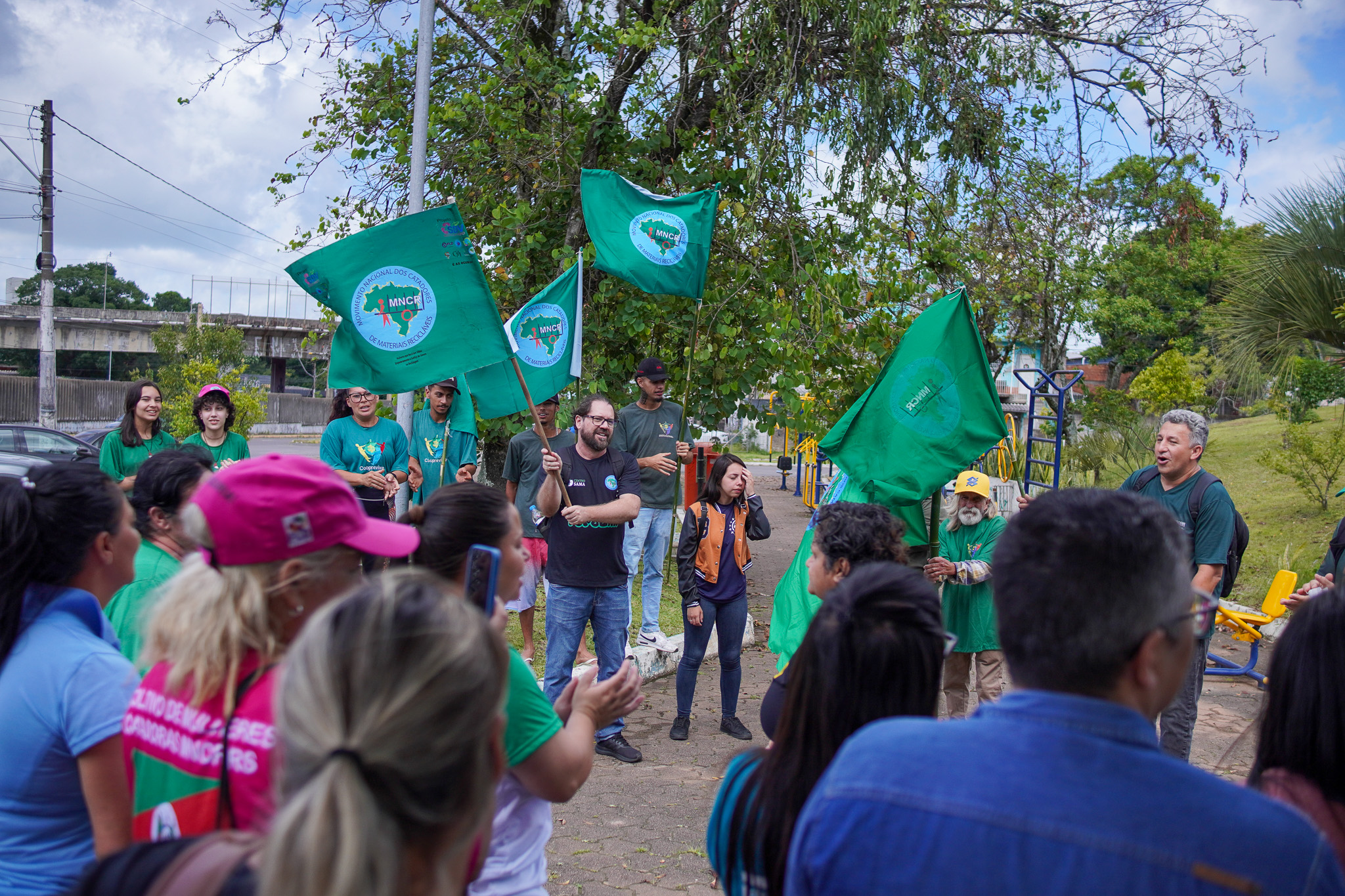 Na manhã do dia 11 de dezembro, cerca de 60 catadoras, catadores e apoiadores se reuniram em frente à Prefeitura de Sapucaia do Sul para protestar pela falta de pagamento à Cooperativa Cooprevive.