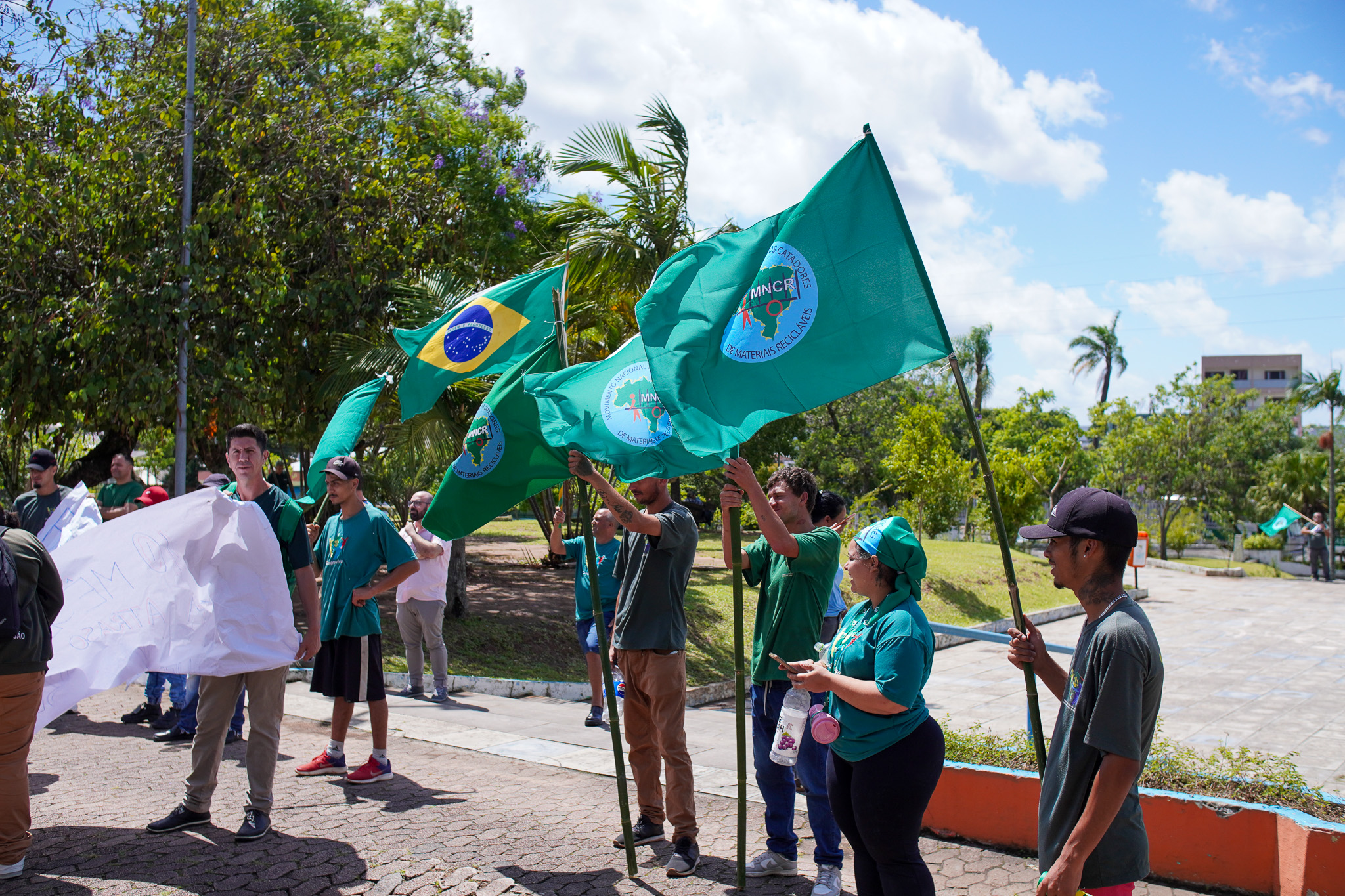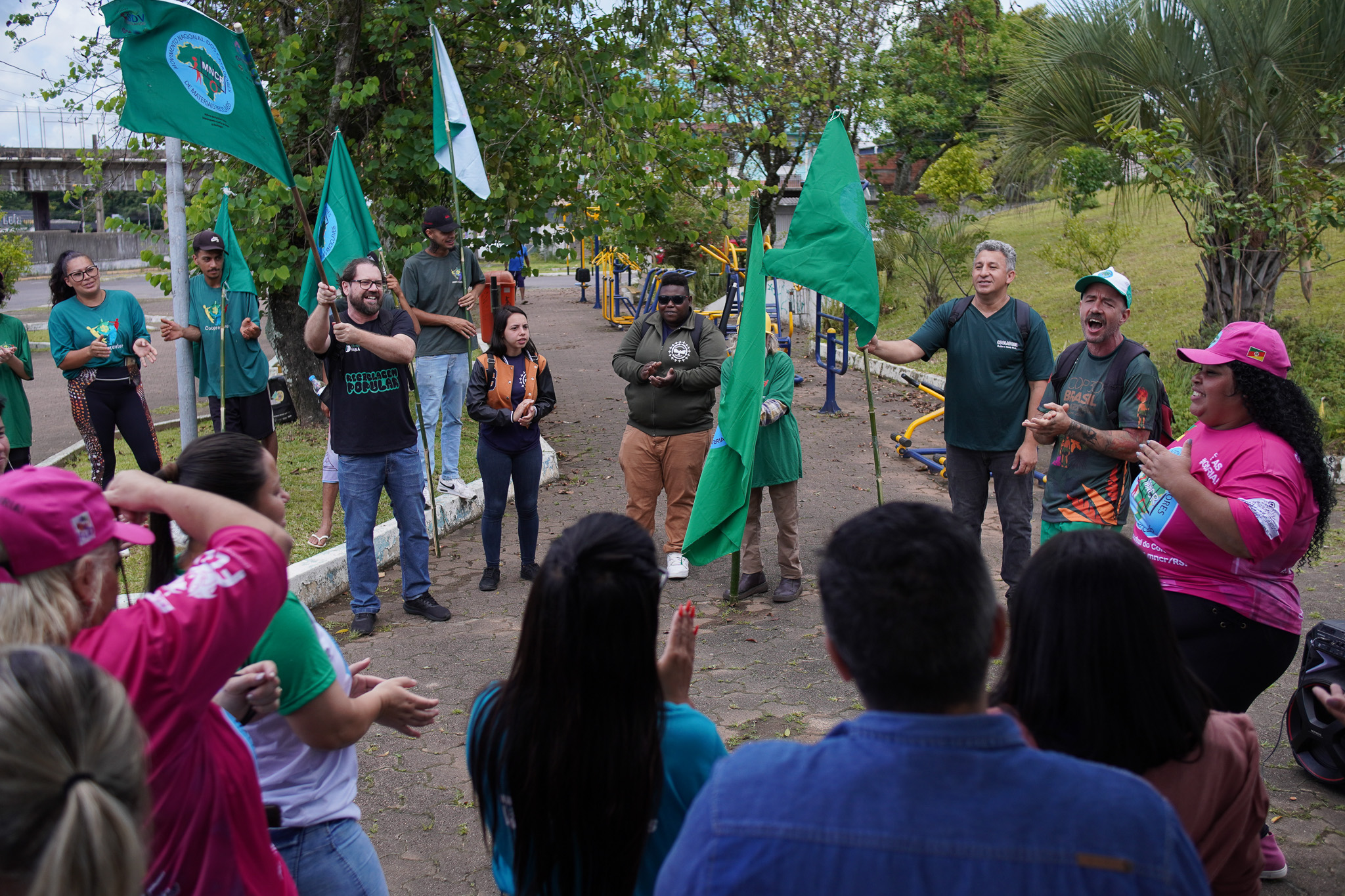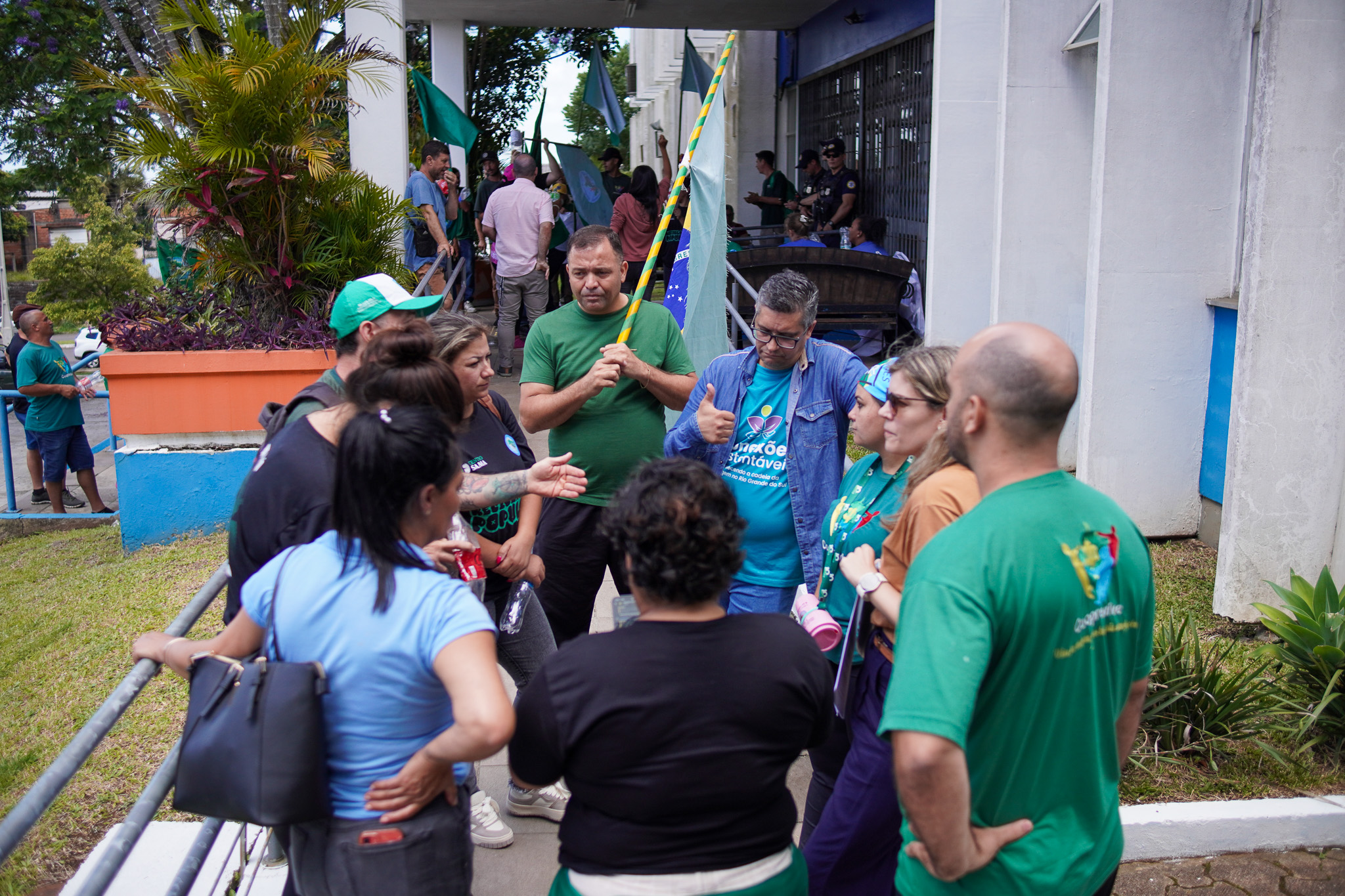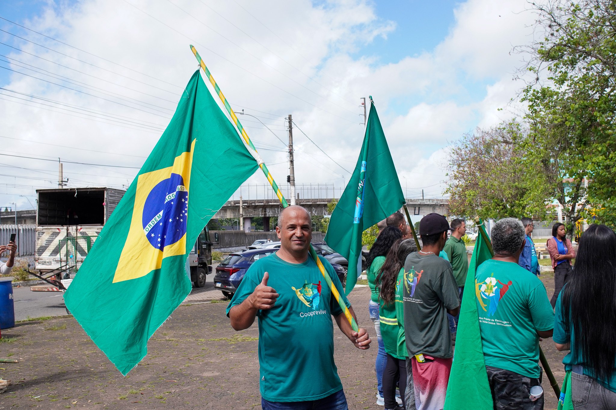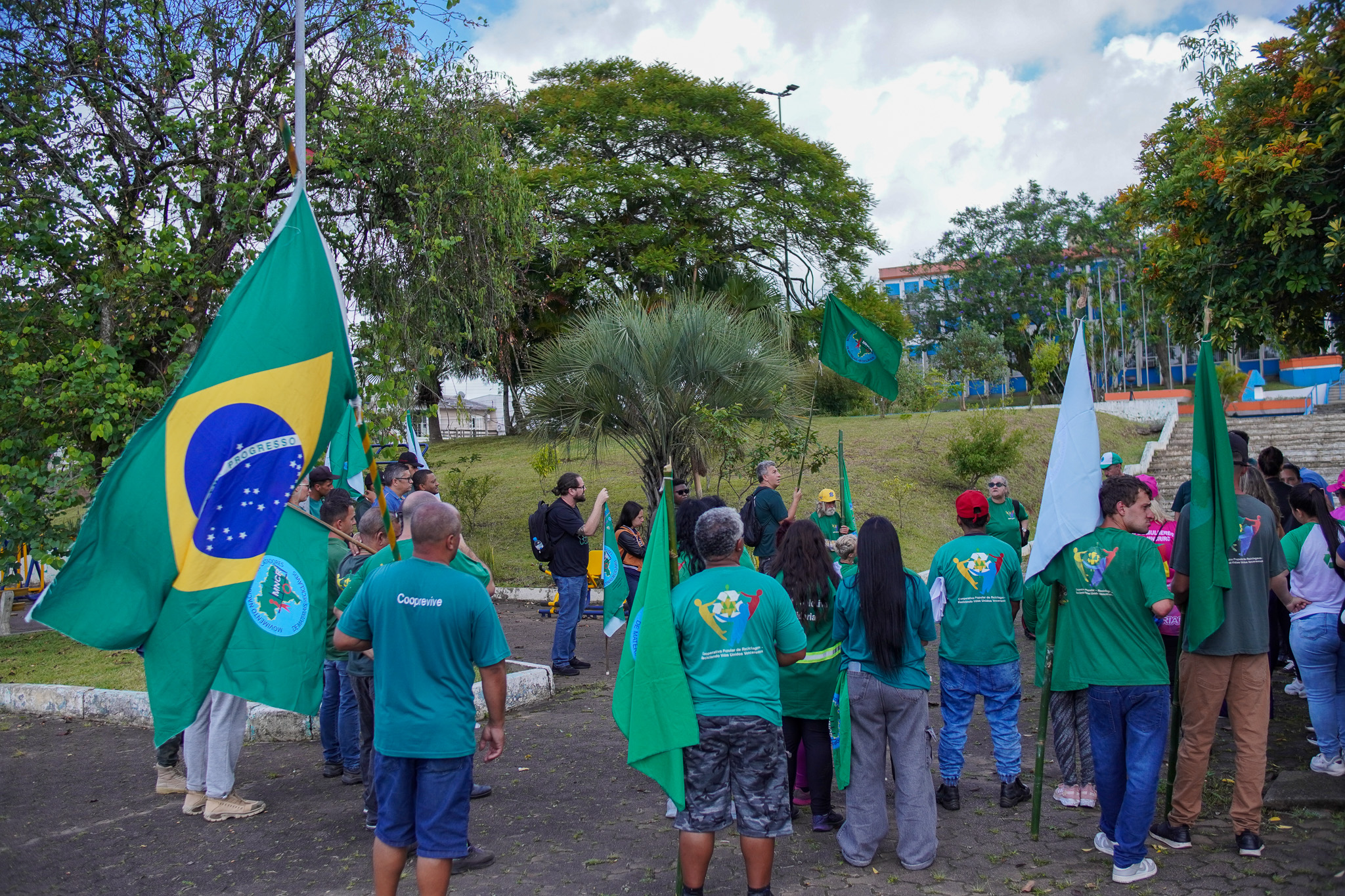 Na manhã do dia 11 de dezembro, cerca de 60 catadoras, catadores e apoiadores se reuniram em frente à Prefeitura de Sapucaia do Sul para protestar pela falta de pagamento à Cooperativa Cooprevive.