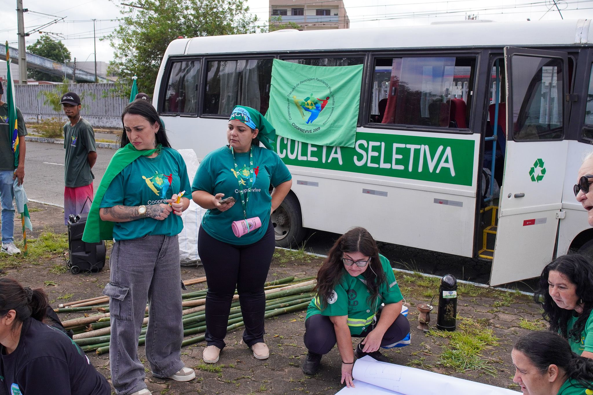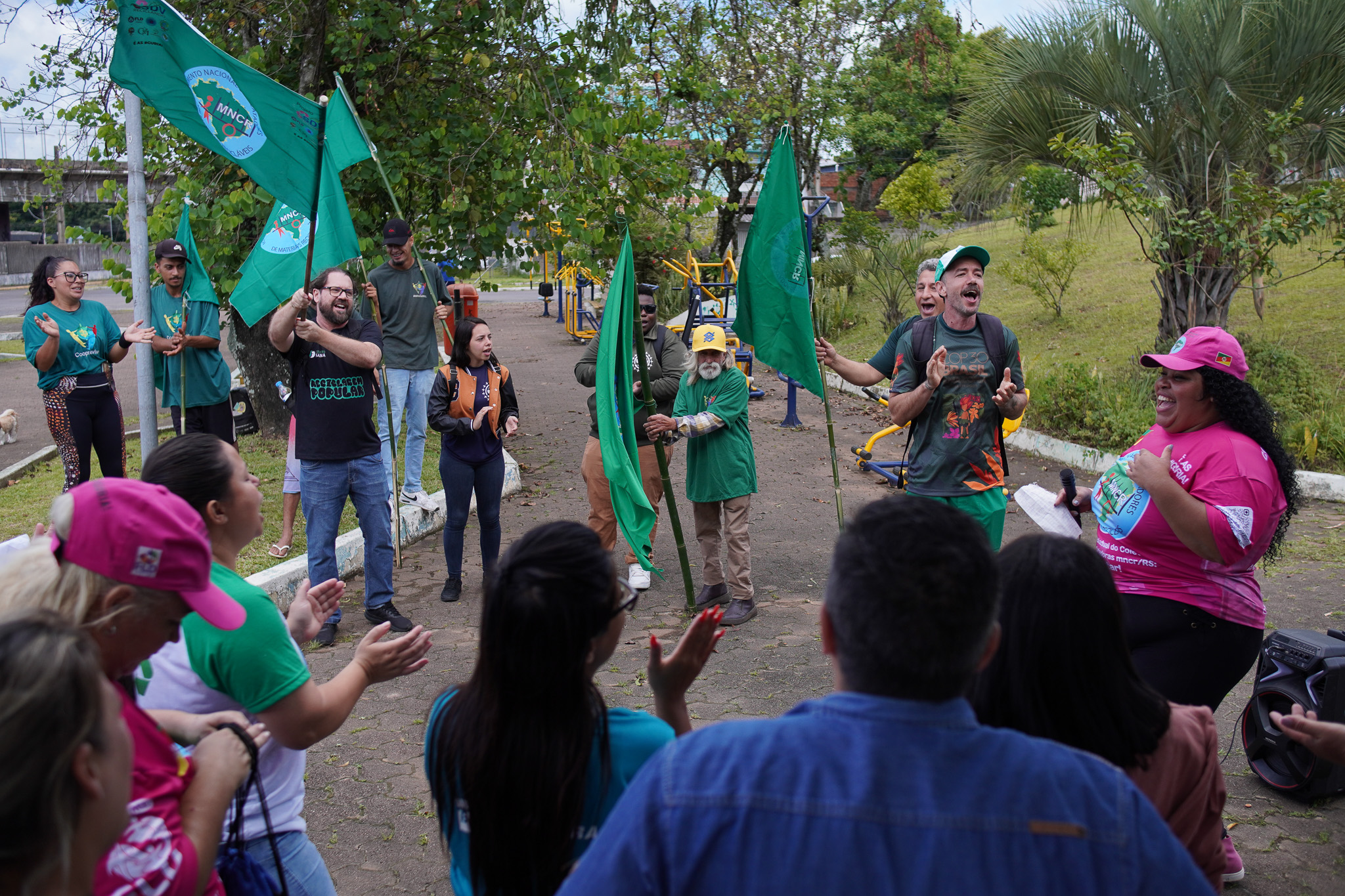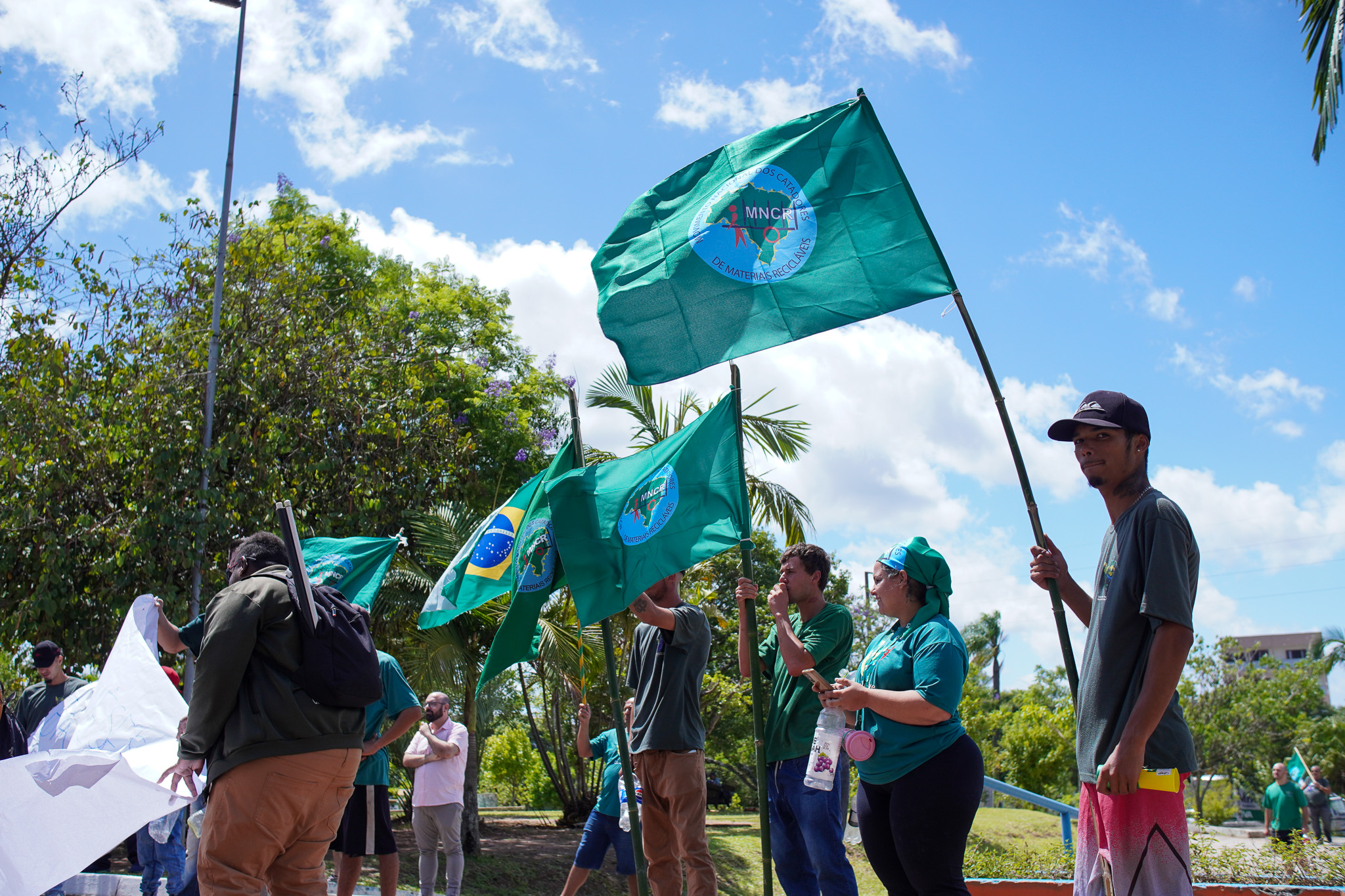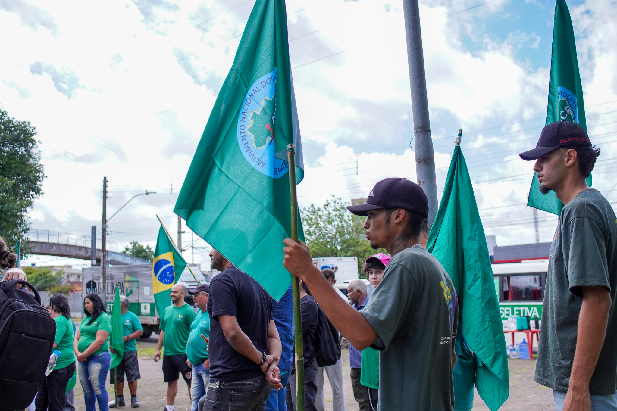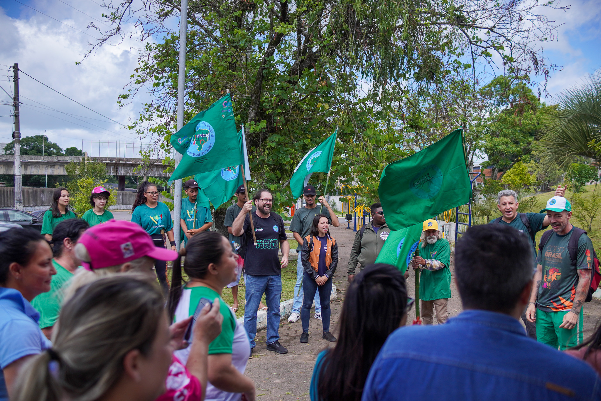Na manhã do dia 11 de dezembro, cerca de 60 catadoras, catadores e apoiadores se reuniram em frente à Prefeitura de Sapucaia do Sul para protestar pela falta de pagamento à Cooperativa Cooprevive.