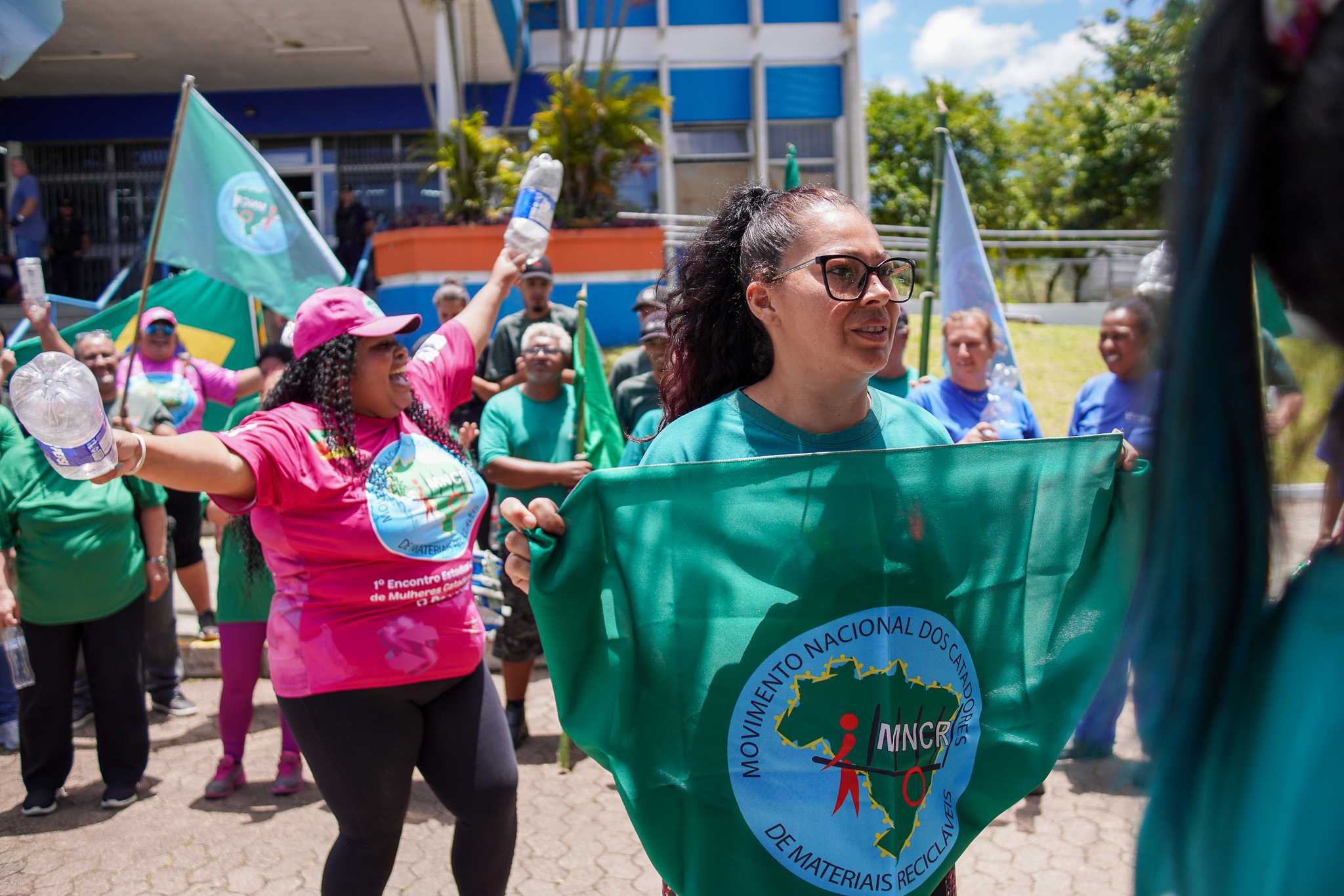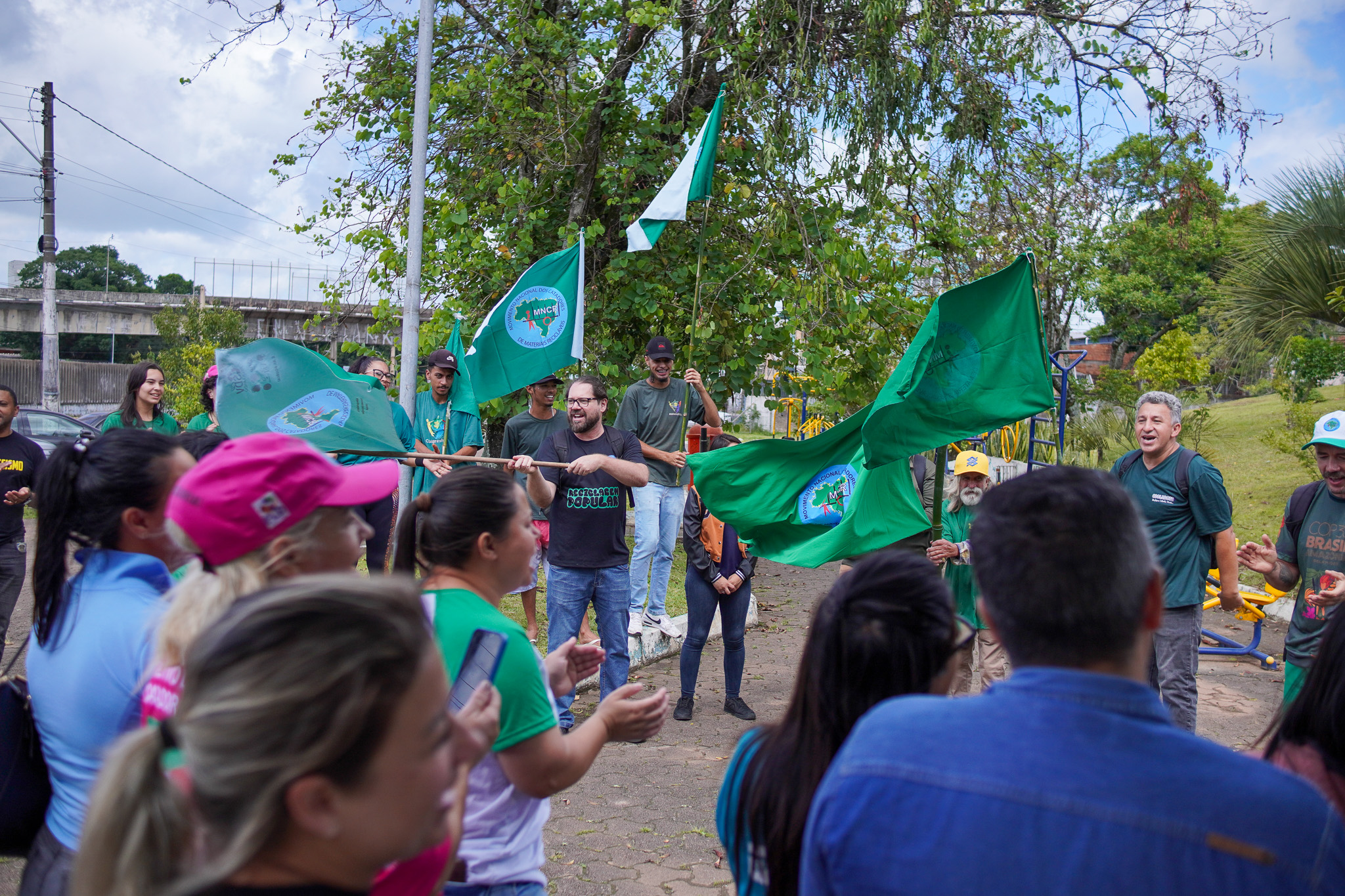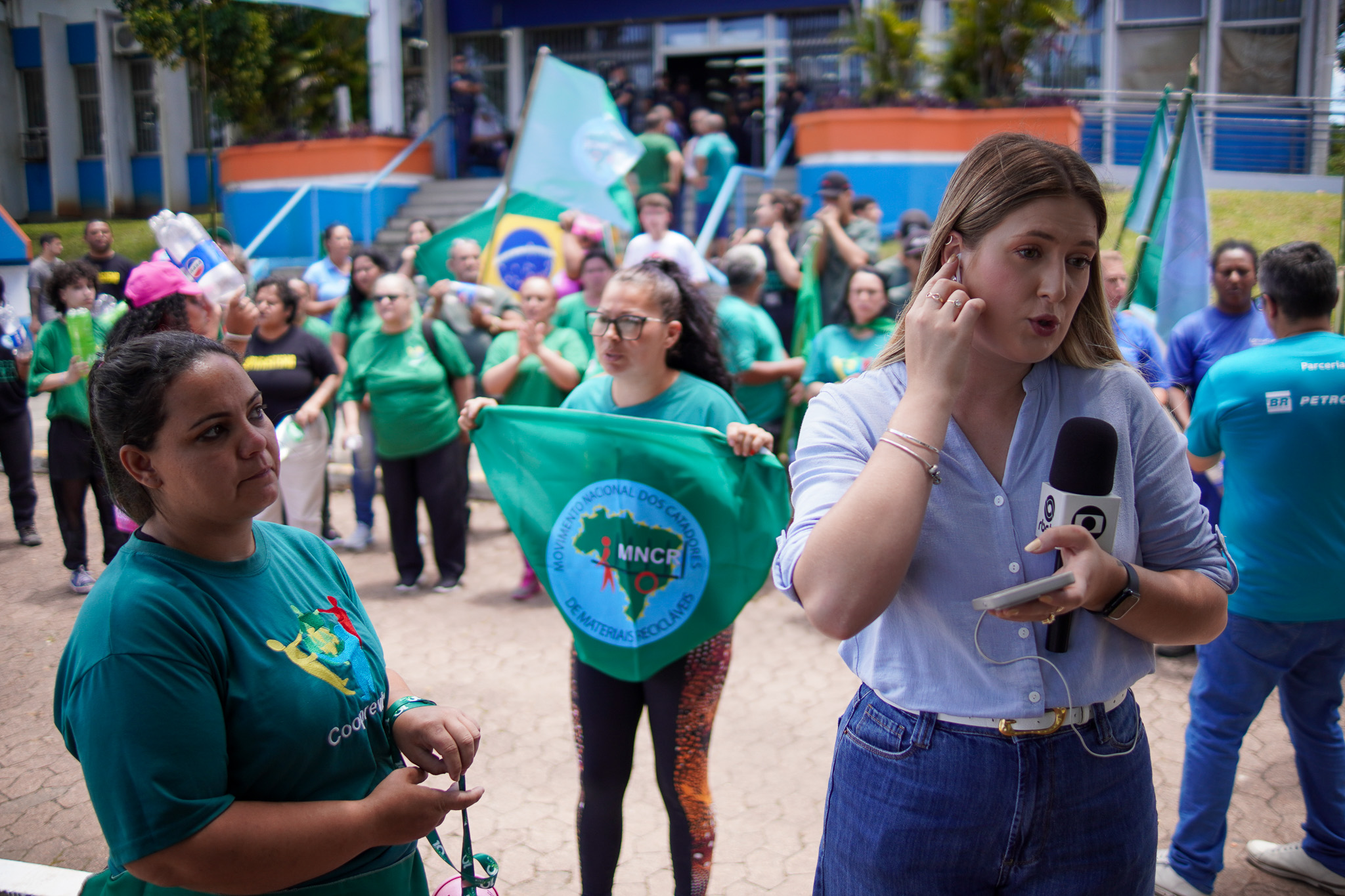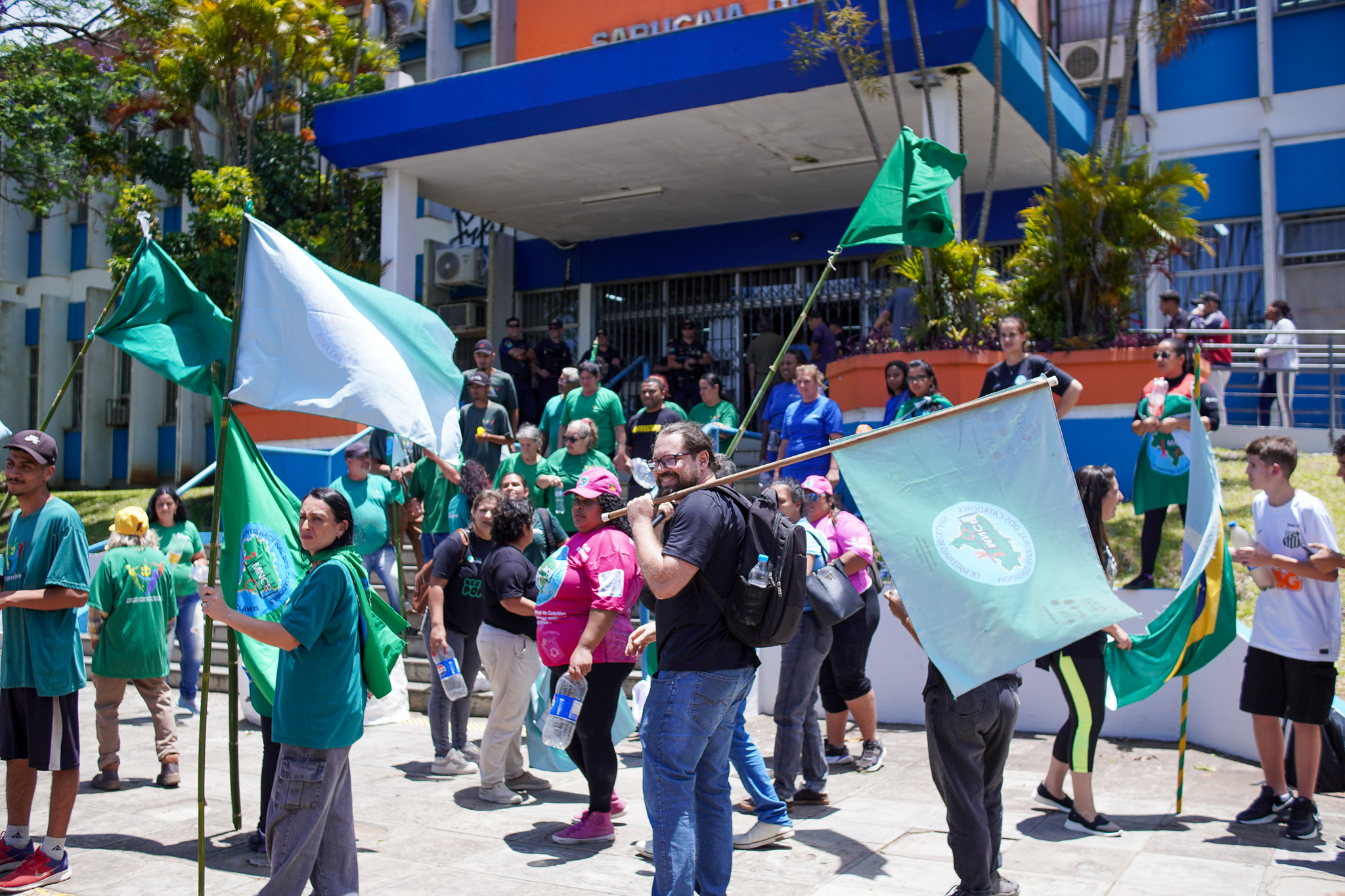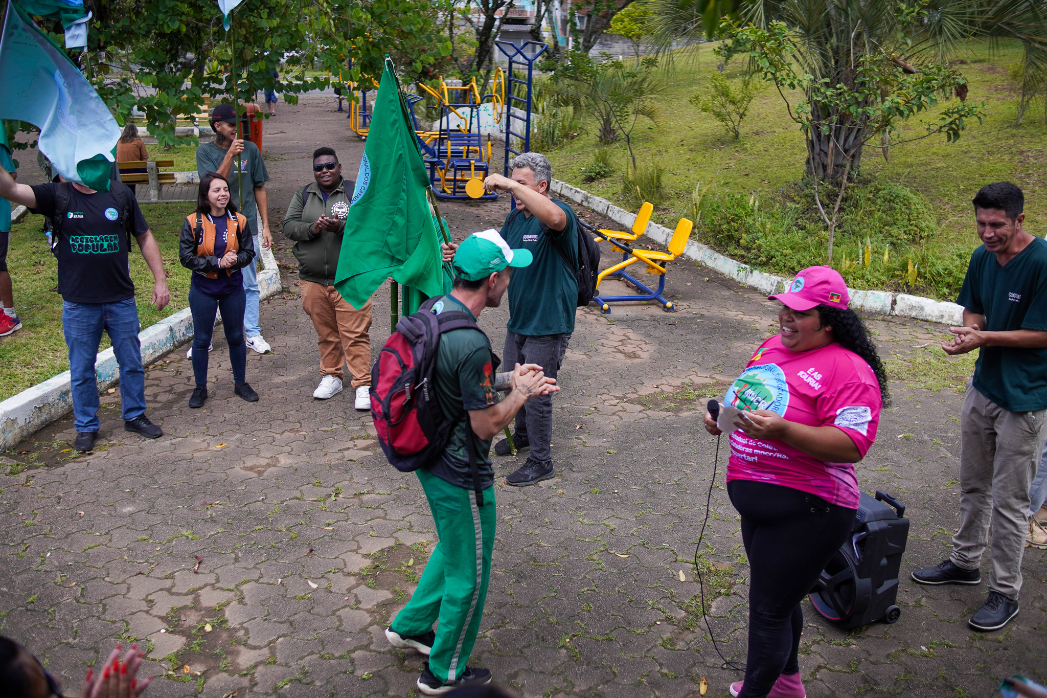 Na manhã do dia 11 de dezembro, cerca de 60 catadoras, catadores e apoiadores se reuniram em frente à Prefeitura de Sapucaia do Sul para protestar pela falta de pagamento à Cooperativa Cooprevive.