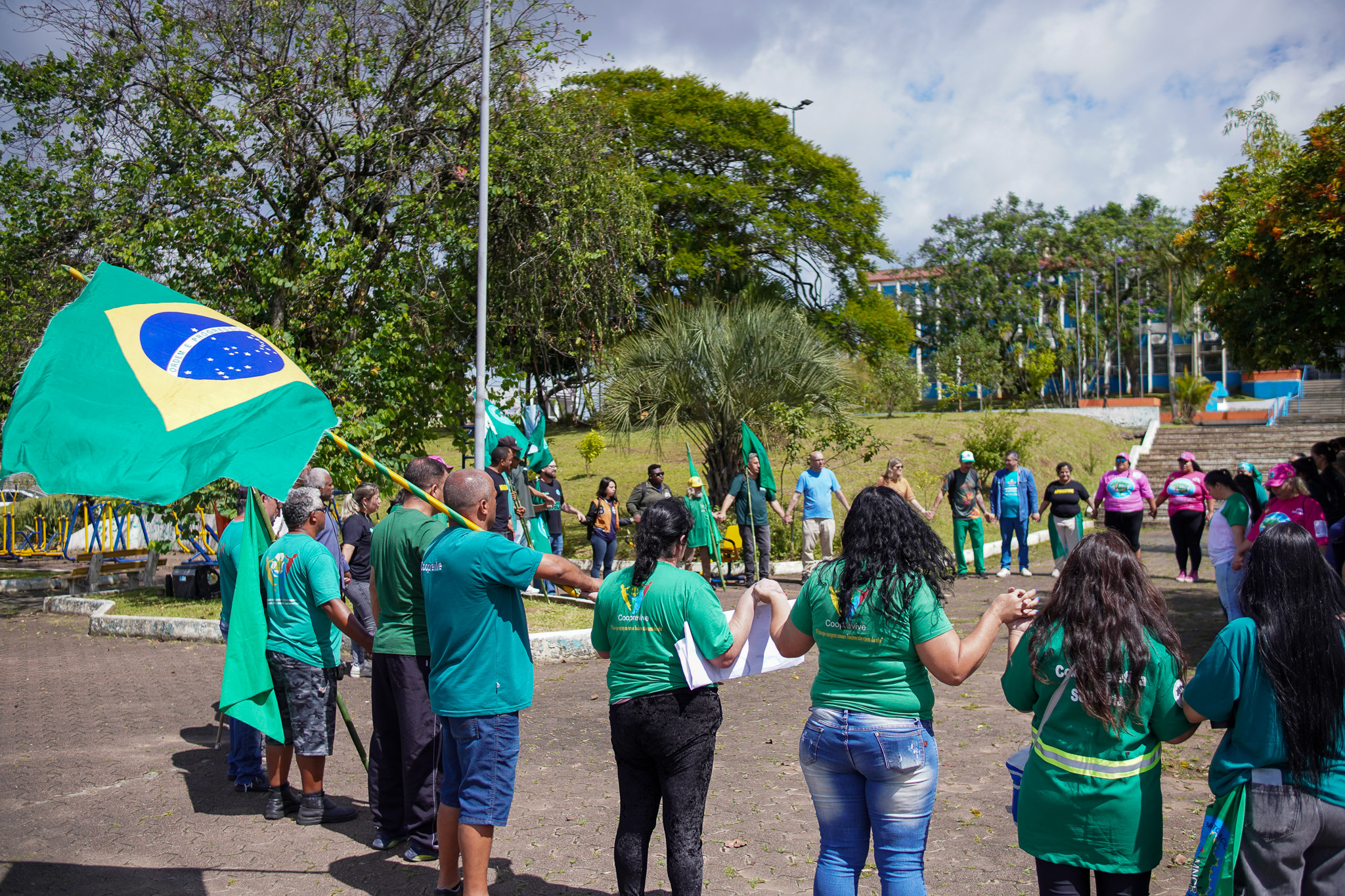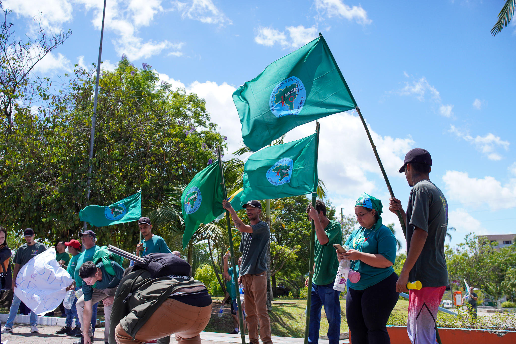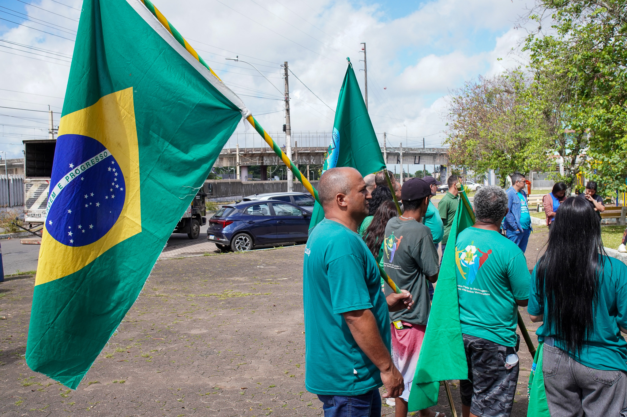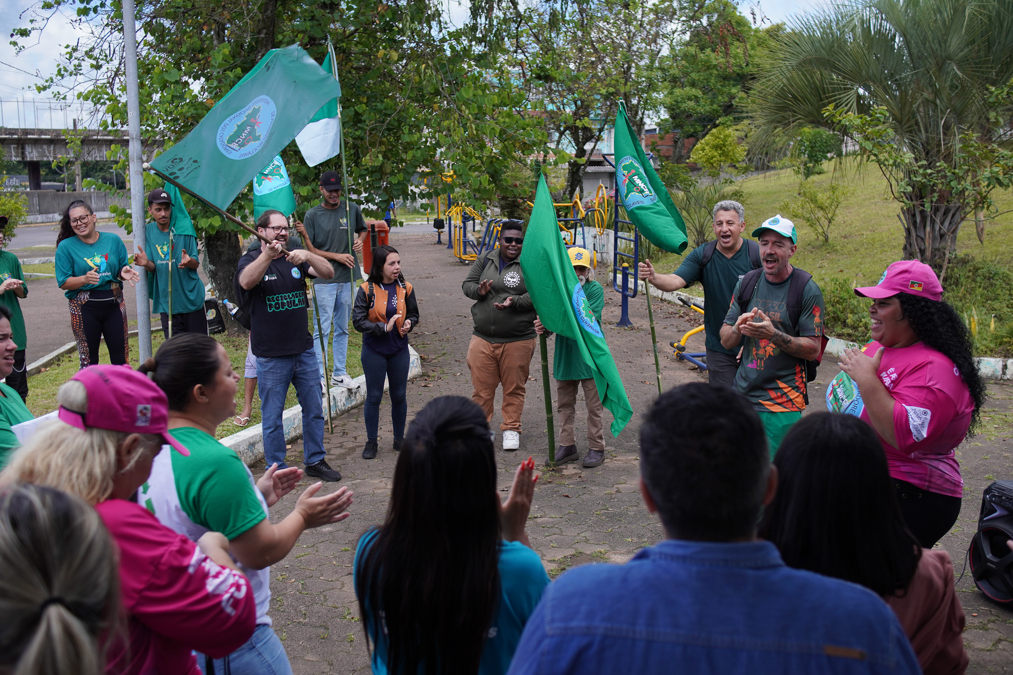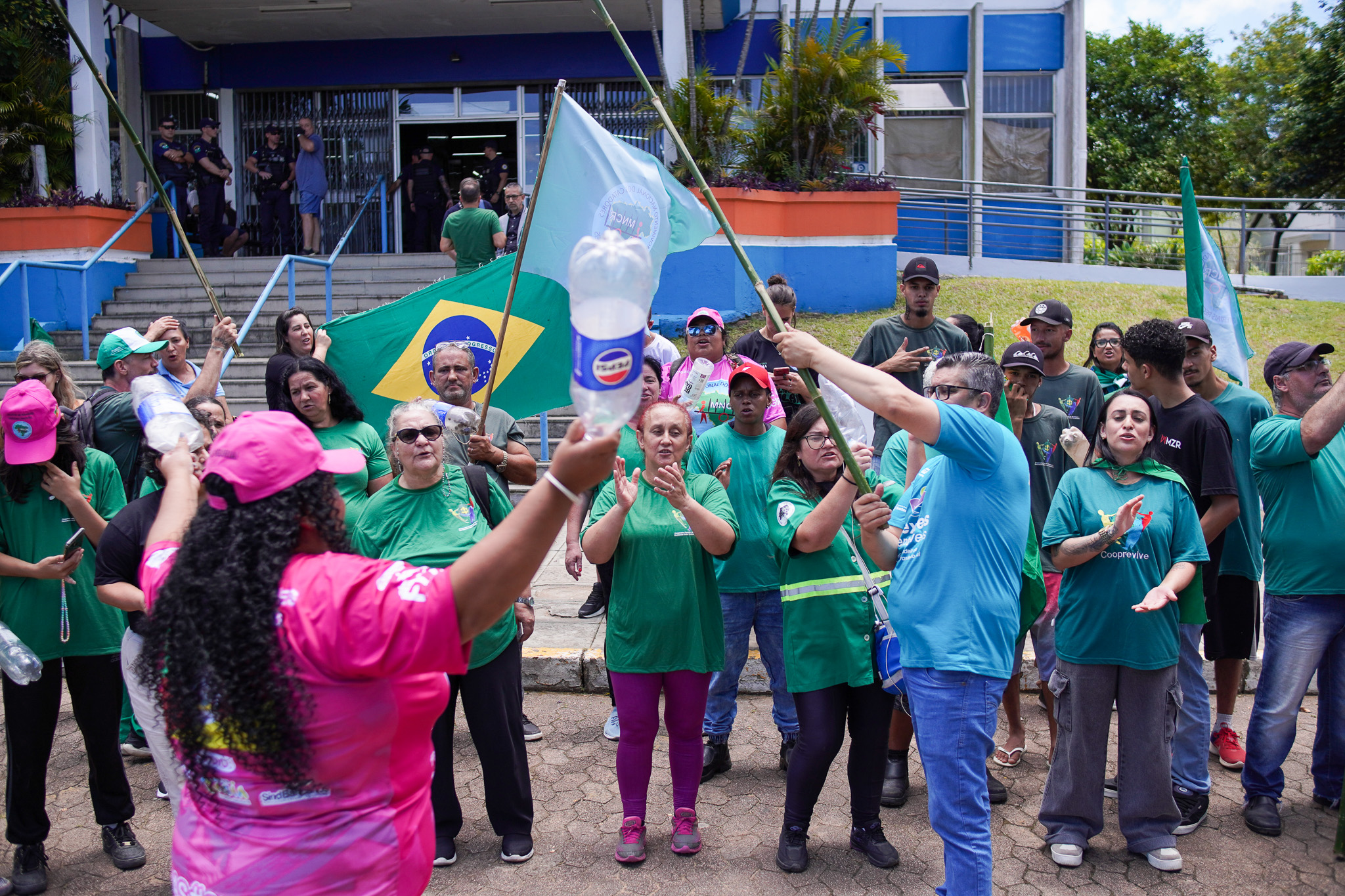 Na manhã do dia 11 de dezembro, cerca de 60 catadoras, catadores e apoiadores se reuniram em frente à Prefeitura de Sapucaia do Sul para protestar pela falta de pagamento à Cooperativa Cooprevive.