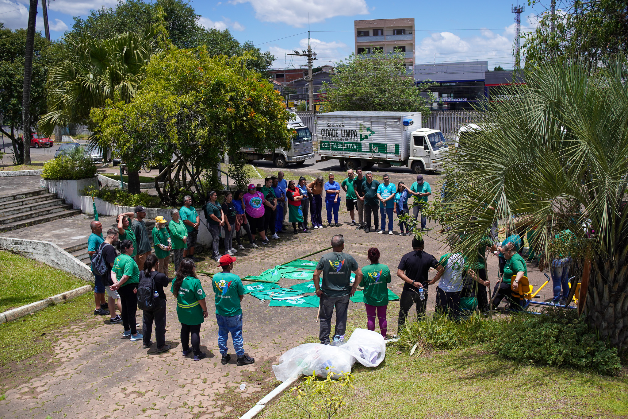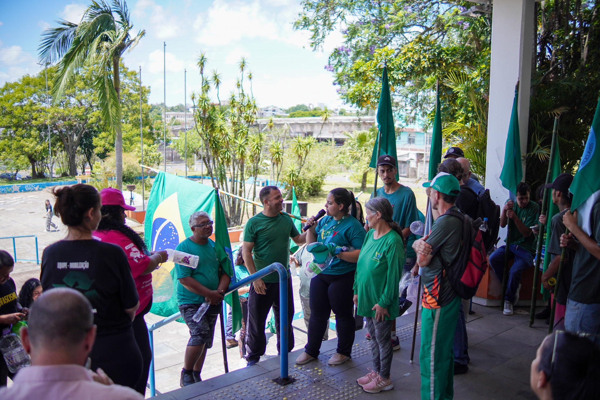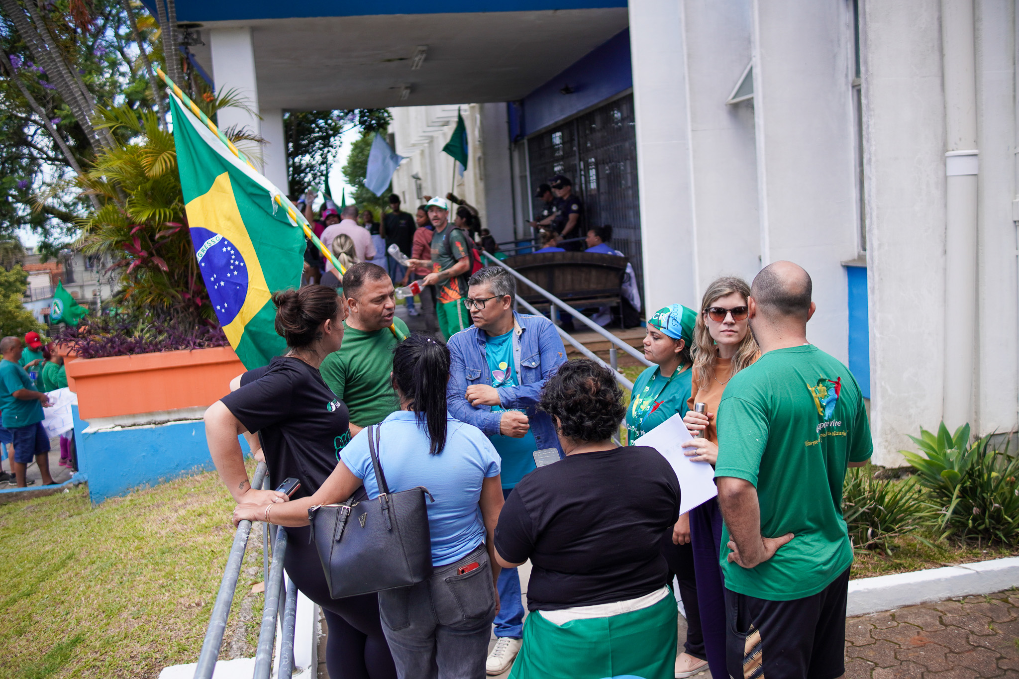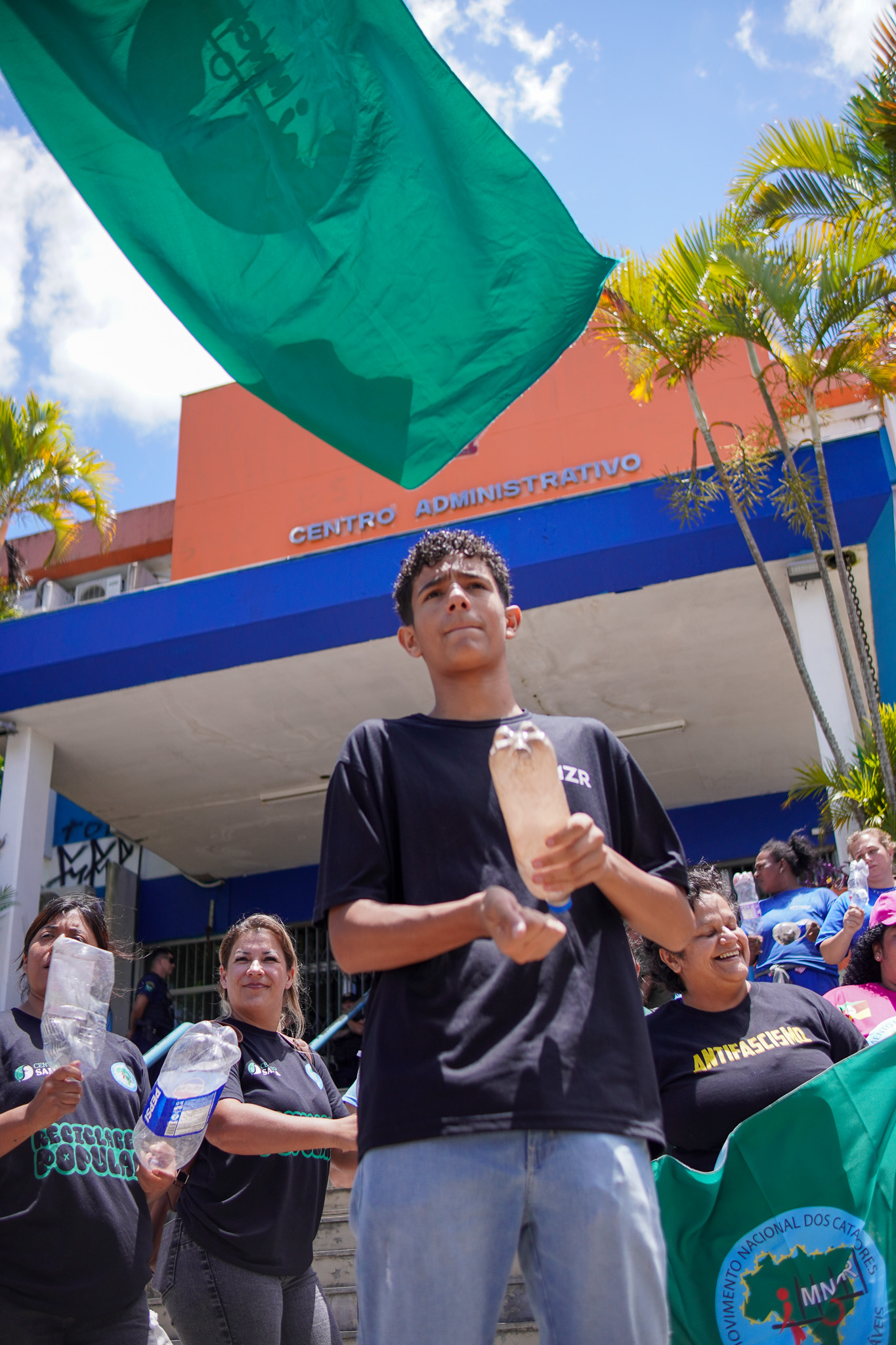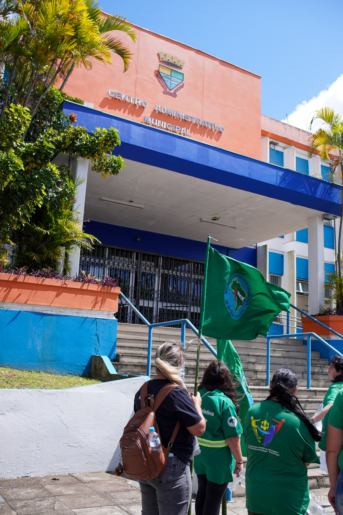 Na manhã do dia 11 de dezembro, cerca de 60 catadoras, catadores e apoiadores se reuniram em frente à Prefeitura de Sapucaia do Sul para protestar pela falta de pagamento à Cooperativa Cooprevive.