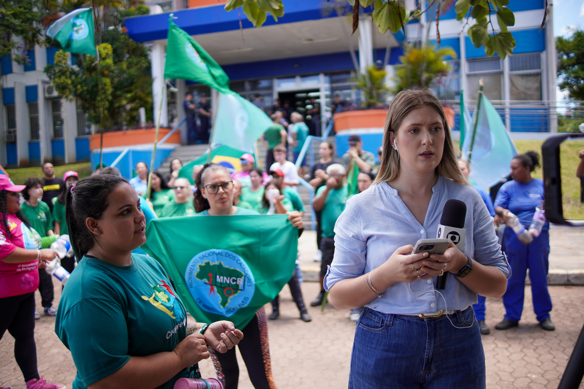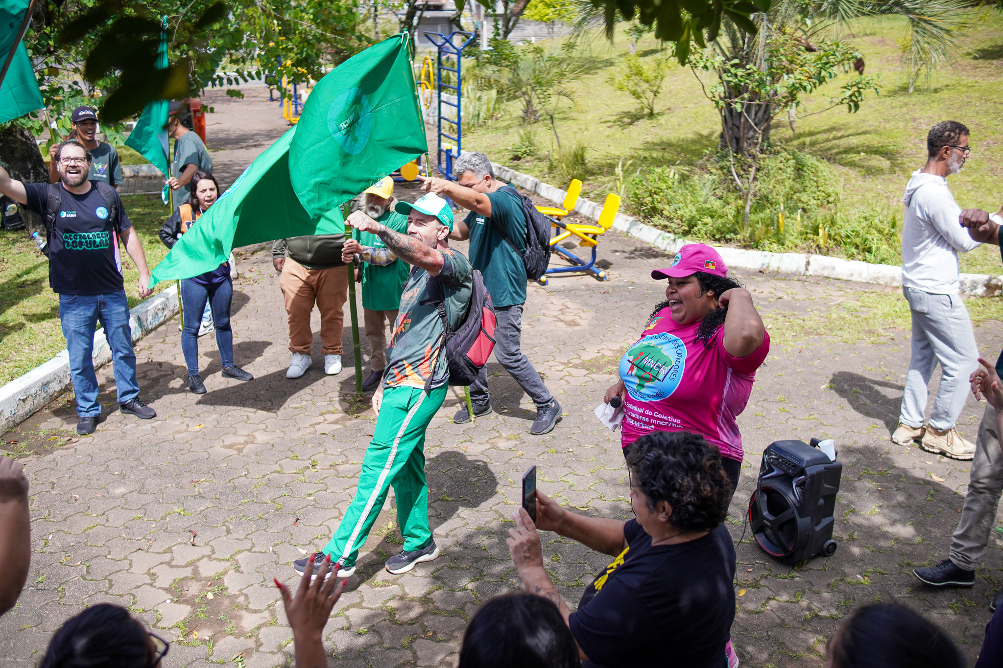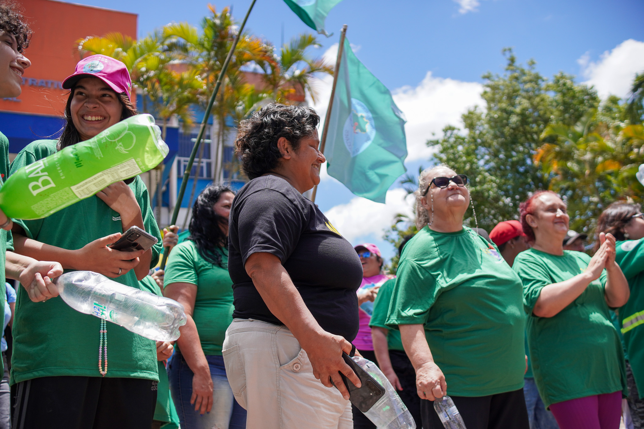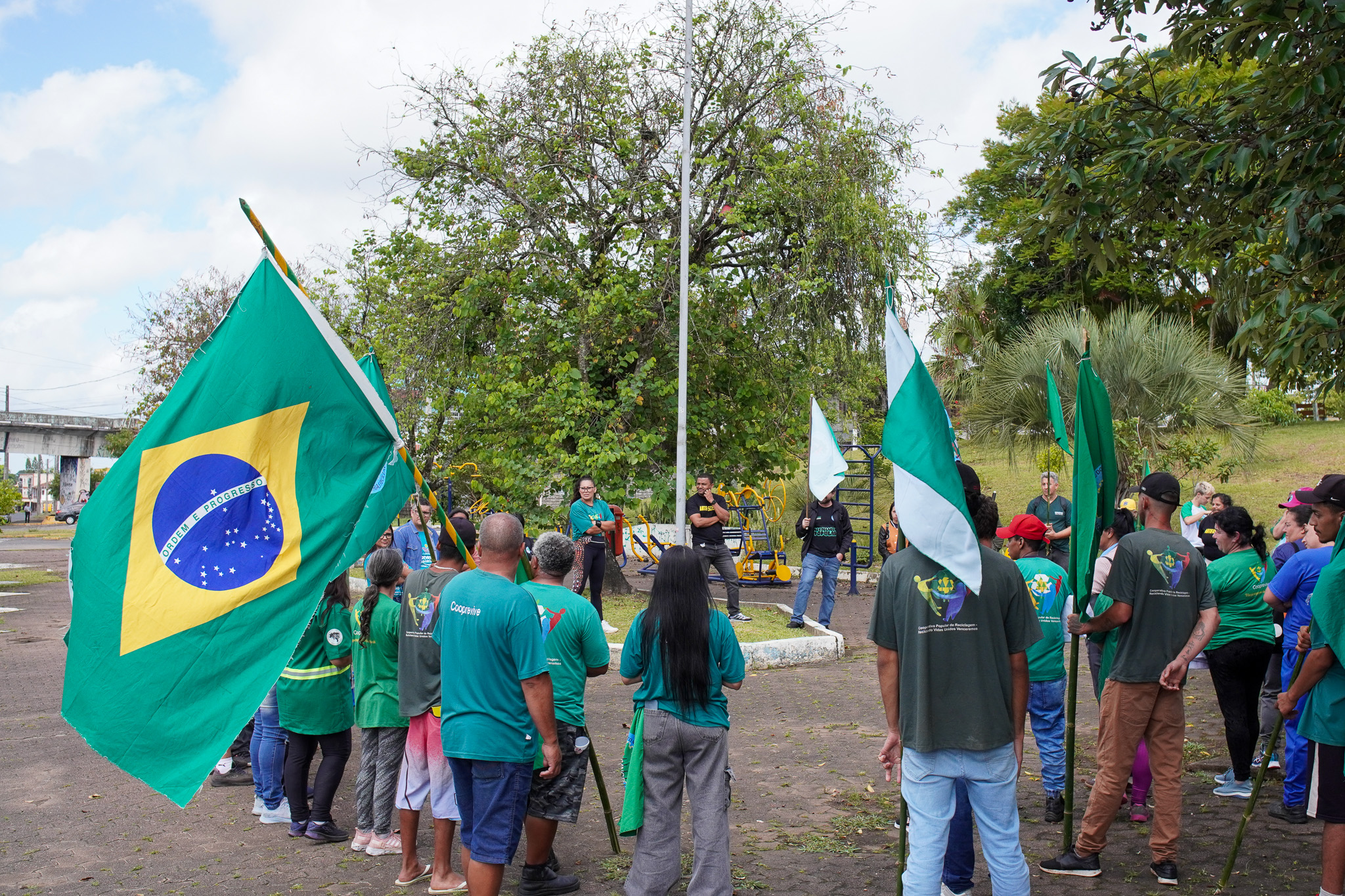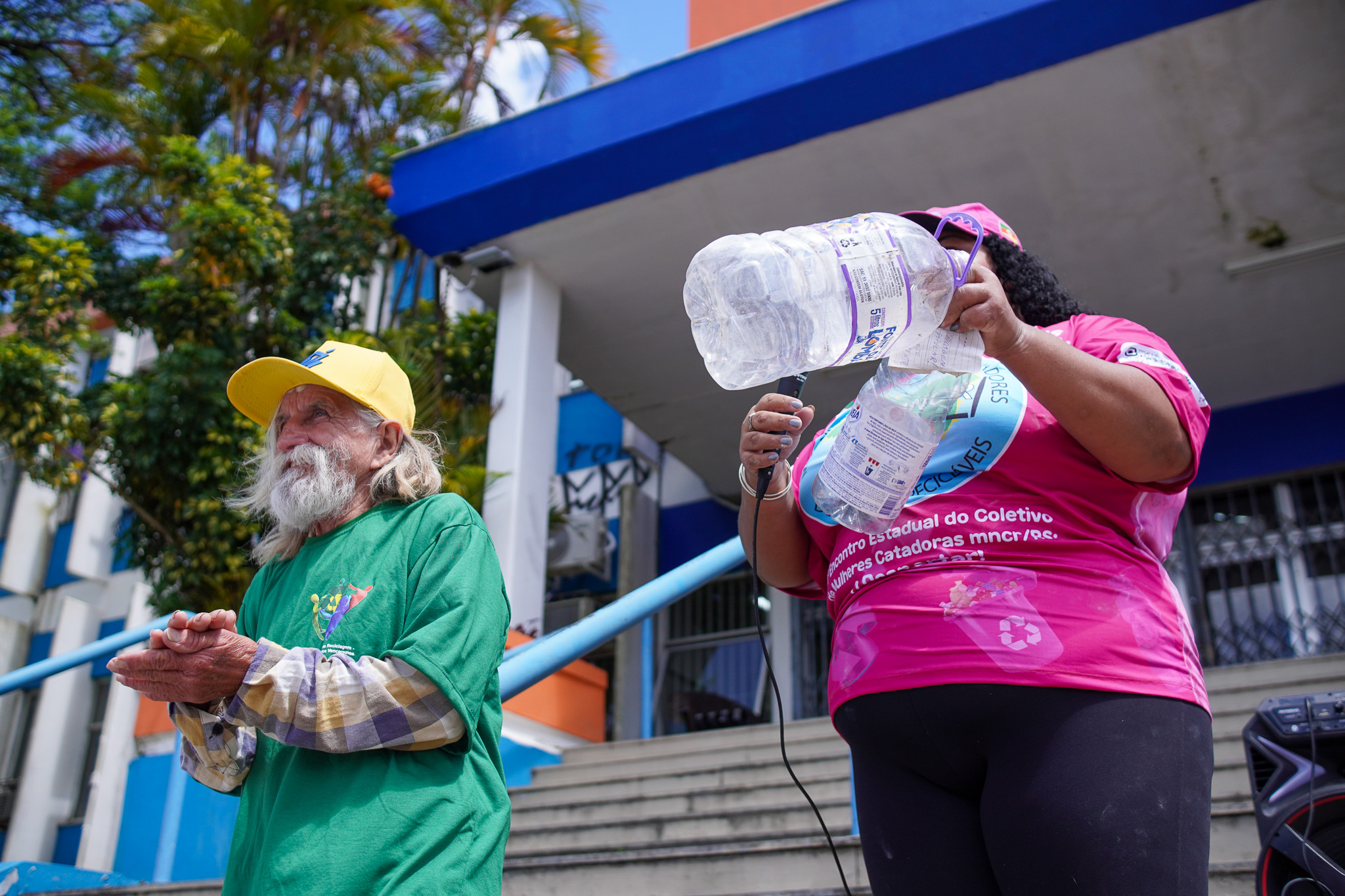 Na manhã do dia 11 de dezembro, cerca de 60 catadoras, catadores e apoiadores se reuniram em frente à Prefeitura de Sapucaia do Sul para protestar pela falta de pagamento à Cooperativa Cooprevive.