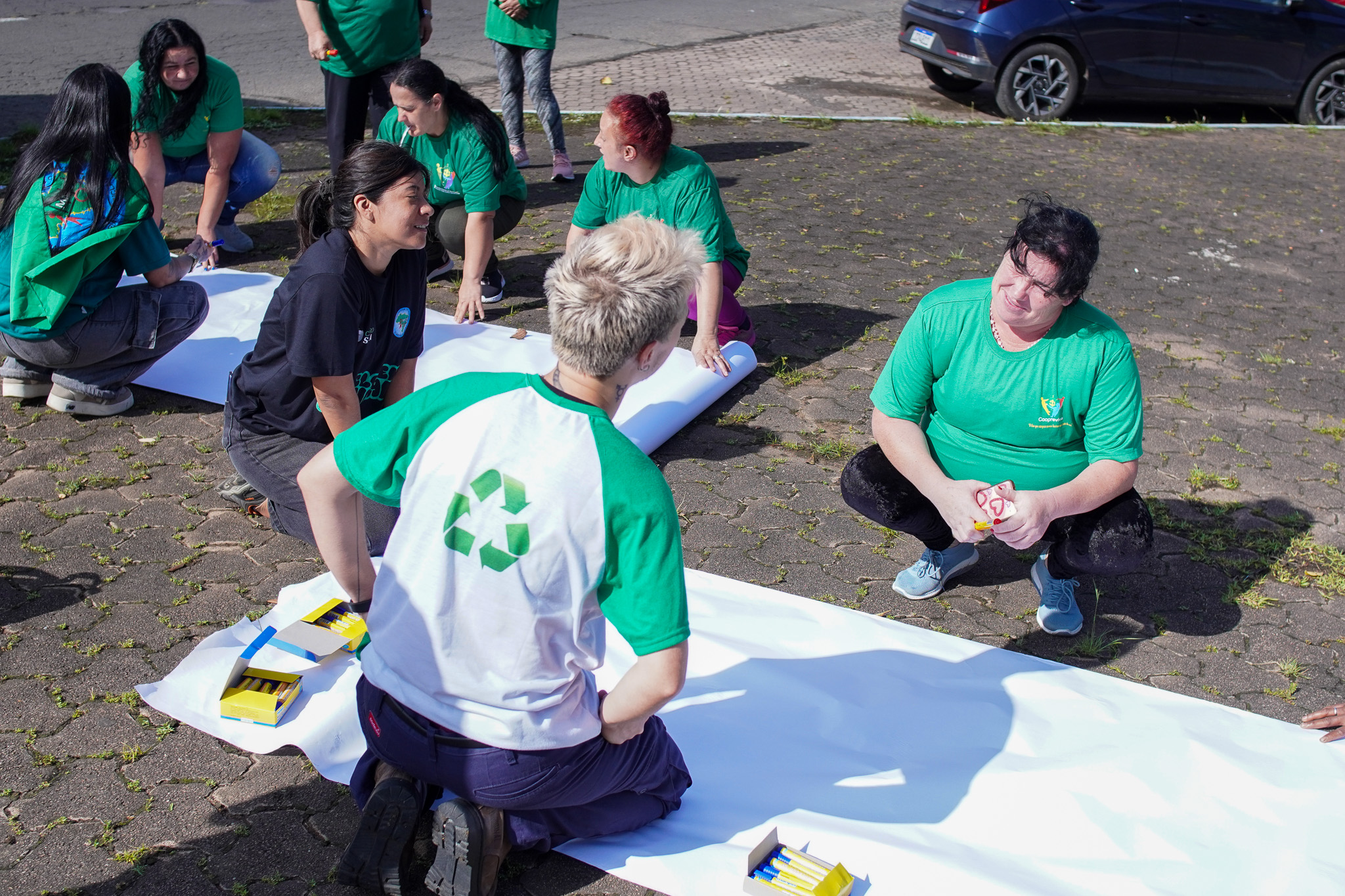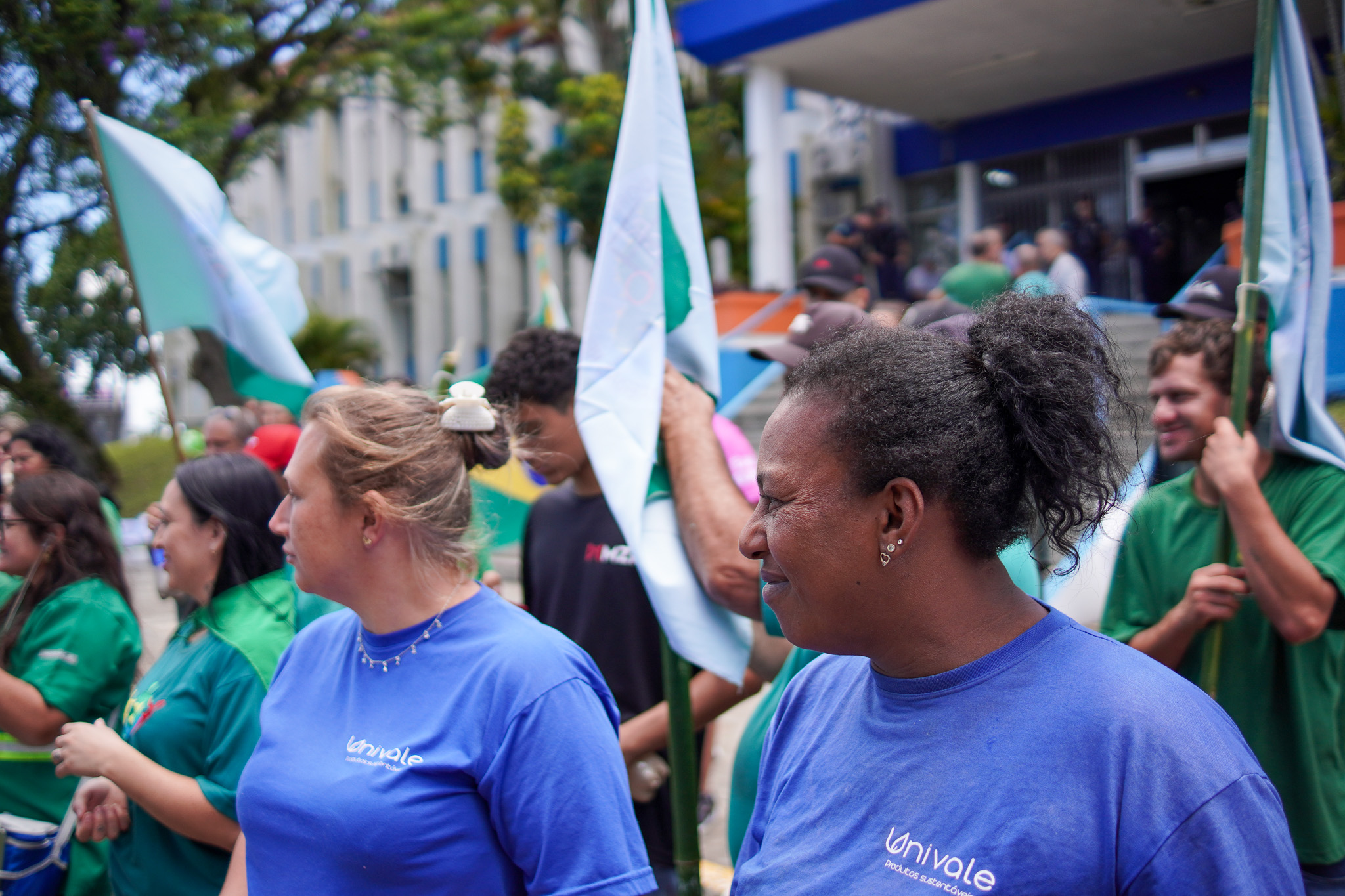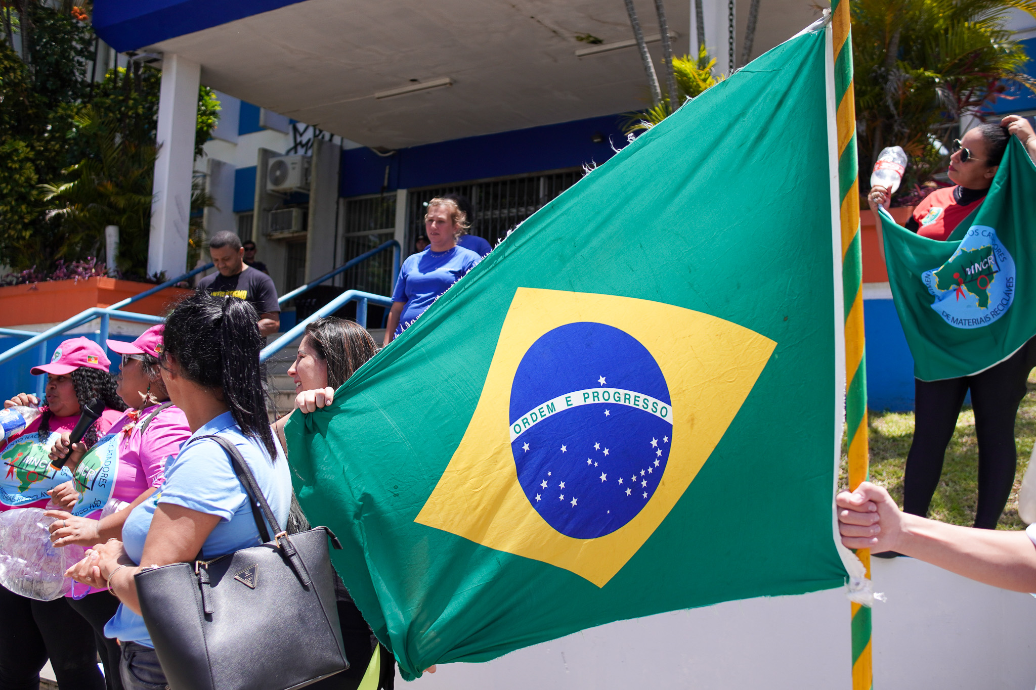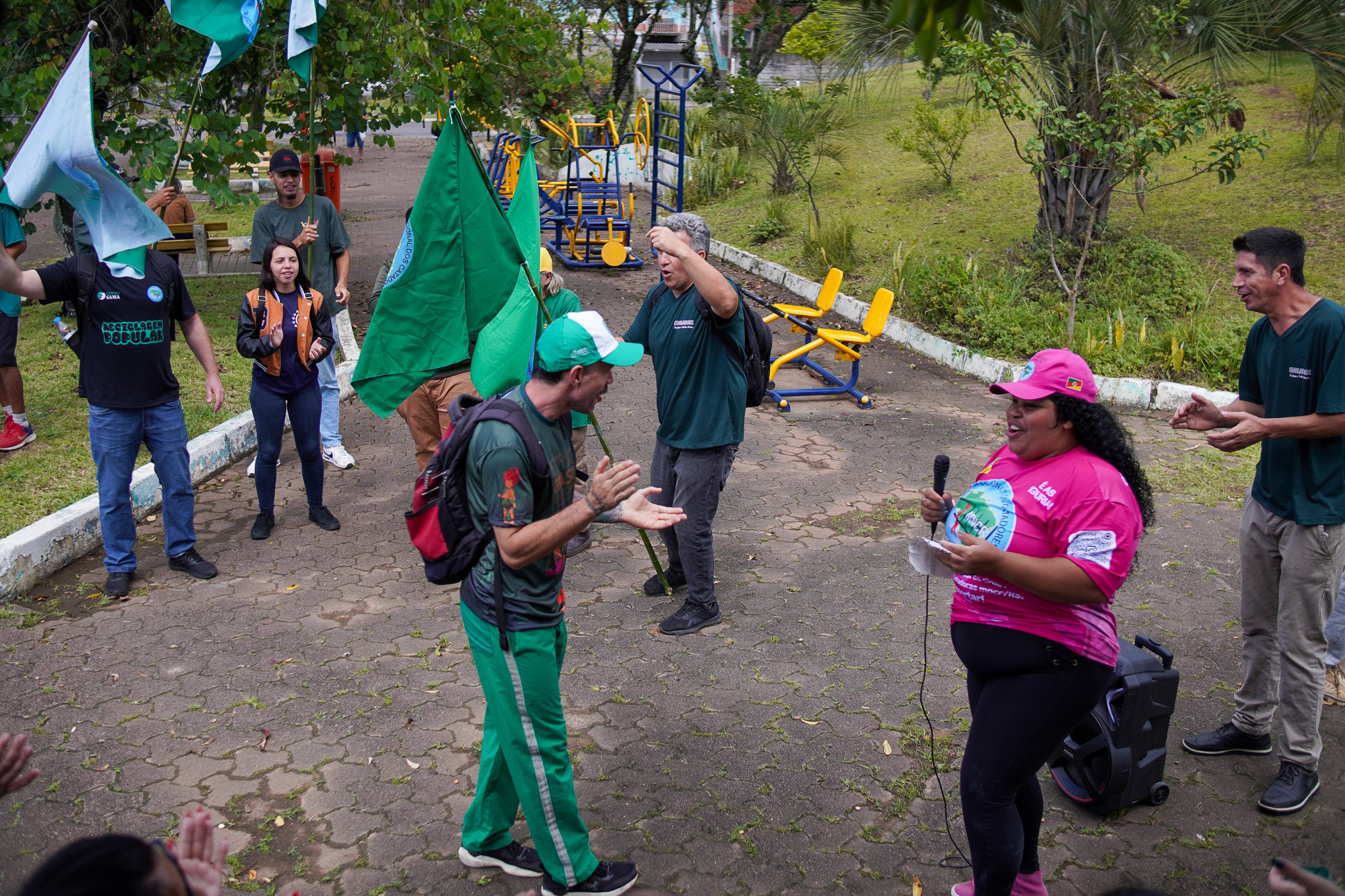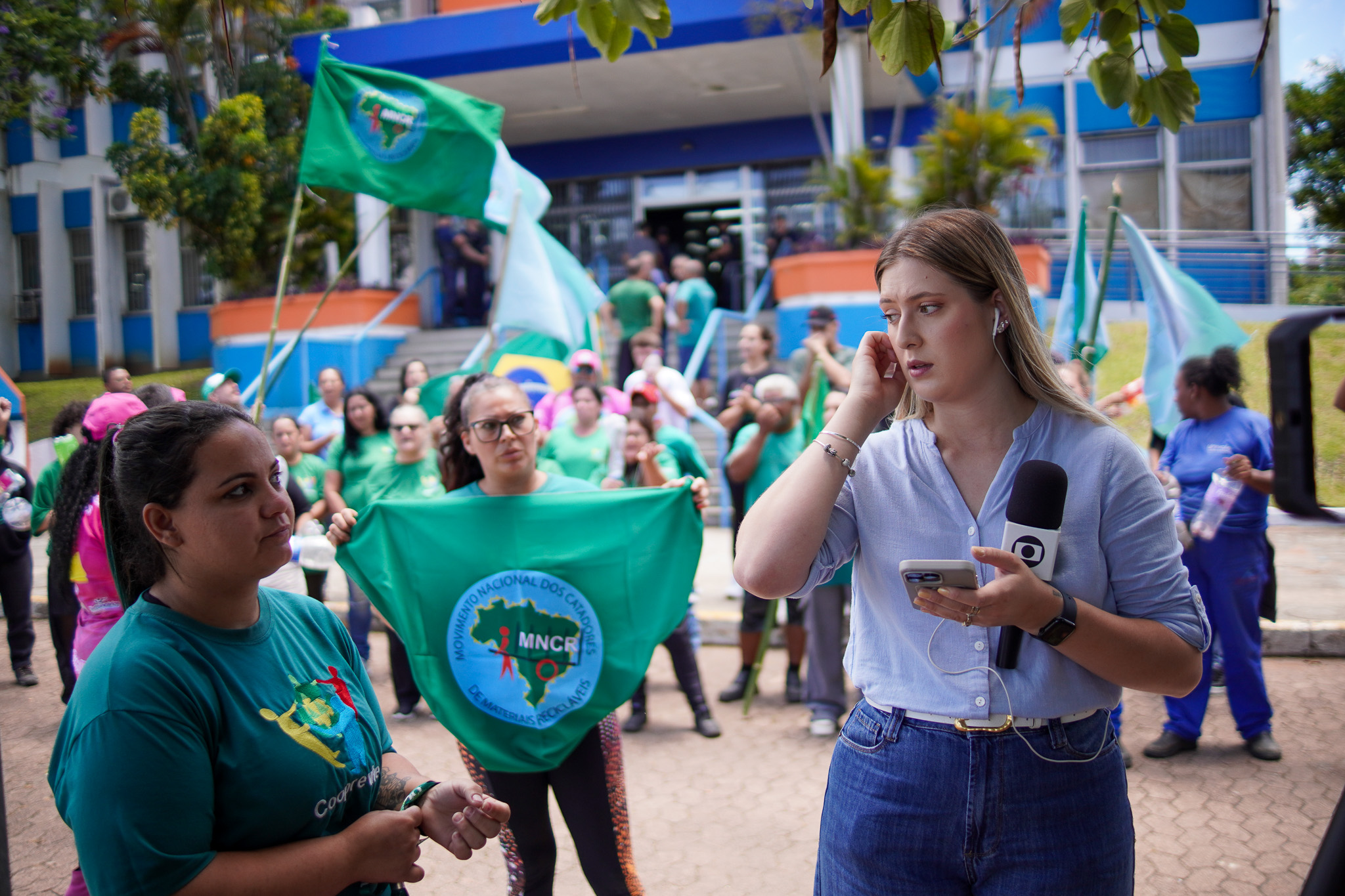 Na manhã do dia 11 de dezembro, cerca de 60 catadoras, catadores e apoiadores se reuniram em frente à Prefeitura de Sapucaia do Sul para protestar pela falta de pagamento à Cooperativa Cooprevive.