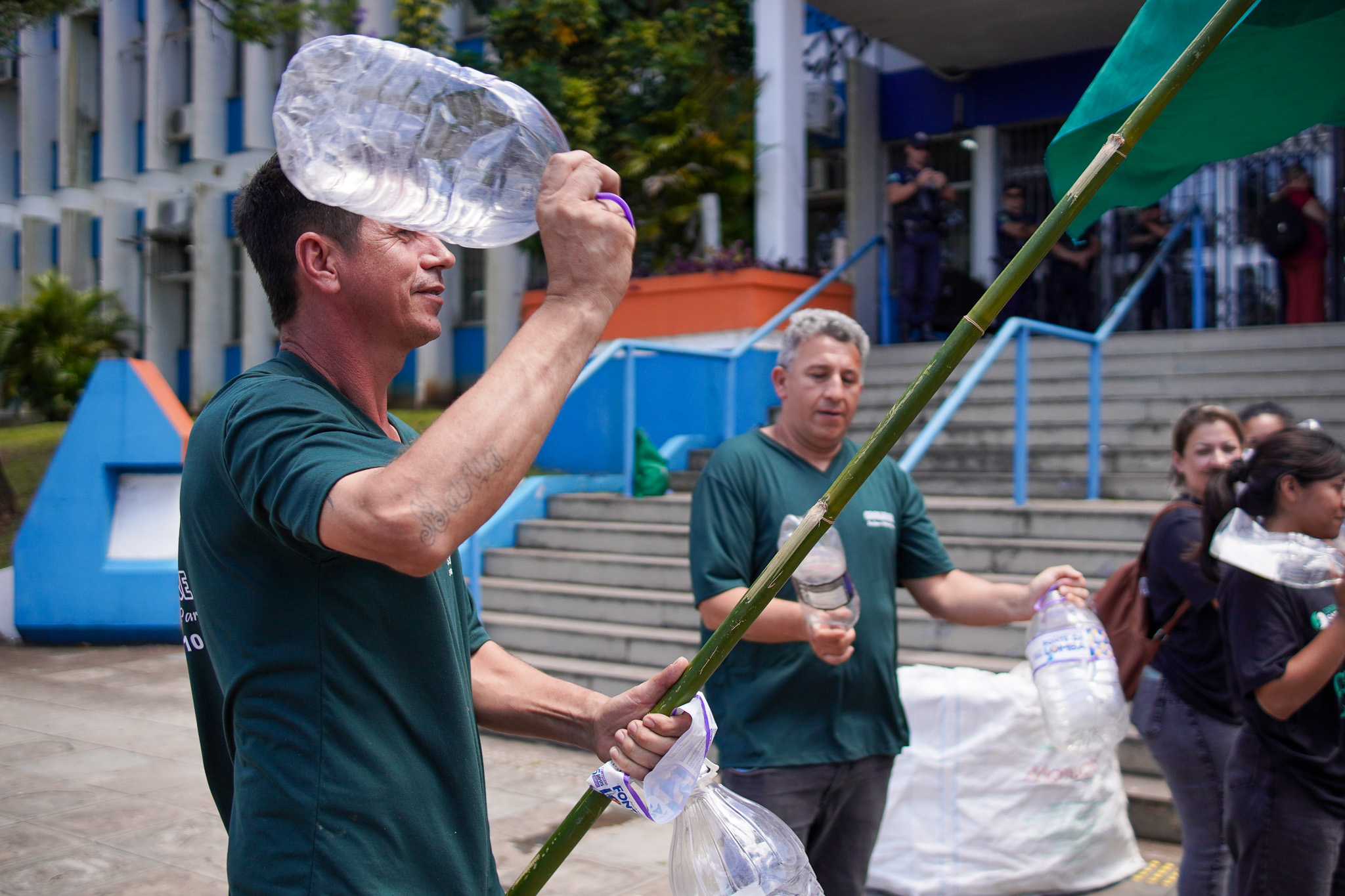 O protesto, que começou às 8h30, antes mesmo do início do expediente da prefeitura, teve a participação de catadores de Porto Alegre, Canoas, Esteio, São Leopoldo, Sapucaia do Sul, Sapiranga e Novo Hamburgo. Representantes das associações e cooperativas se fortalecem a partir da rede do Movimento Nacional de Catadores de Materiais Recicláveis (MNCR) e de projetos do Centro SAMA.